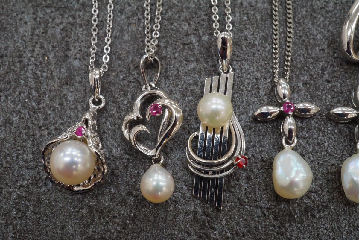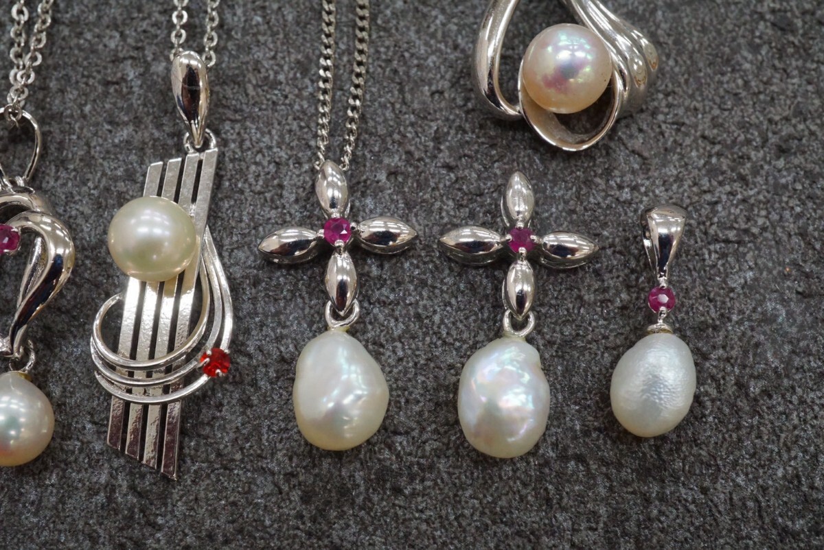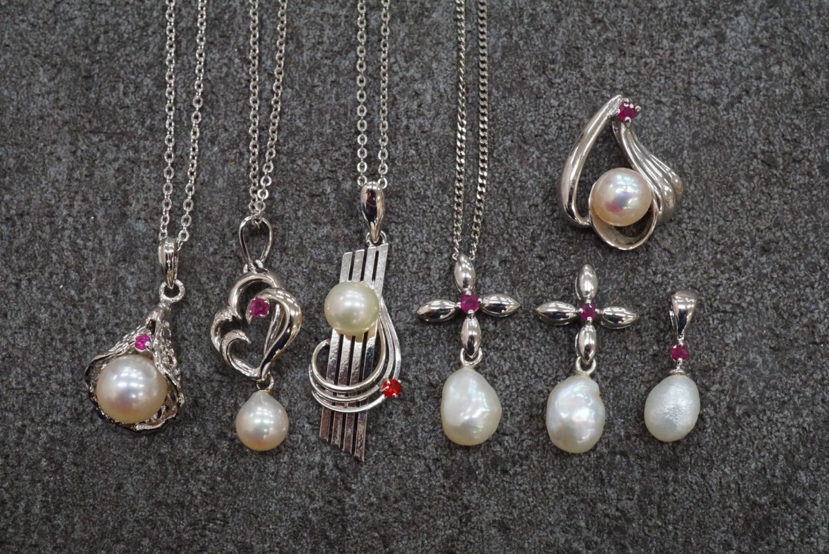 B775 ルビー付き アコヤ真珠など 本真珠 パール ネックレス ペンダント 7点セット ヴィンテージ アクセサリー 大量 まとめて おまとめ