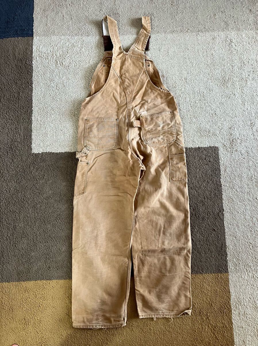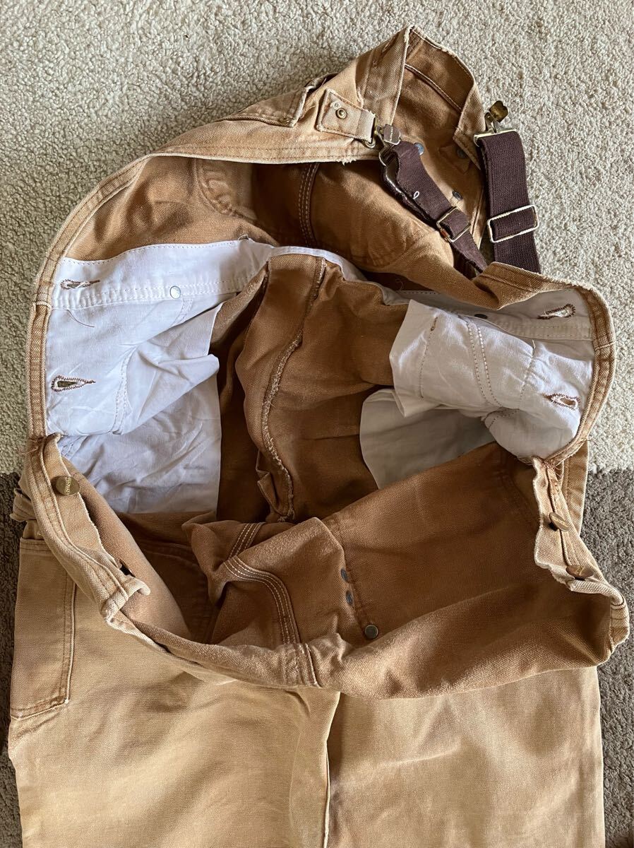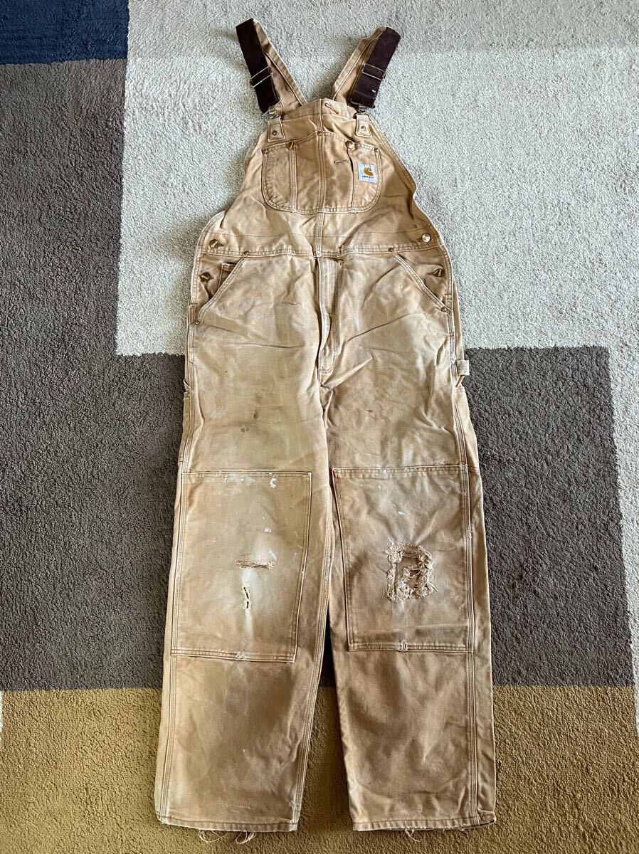 カーハートのダブルニーオーバーオールです。キルティングの裏地はないタイプになりますので、季節問わず履きやすいと思います。