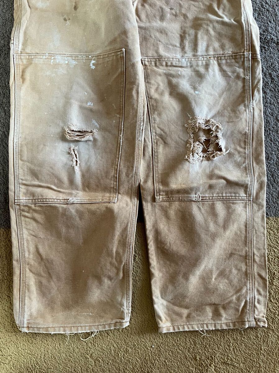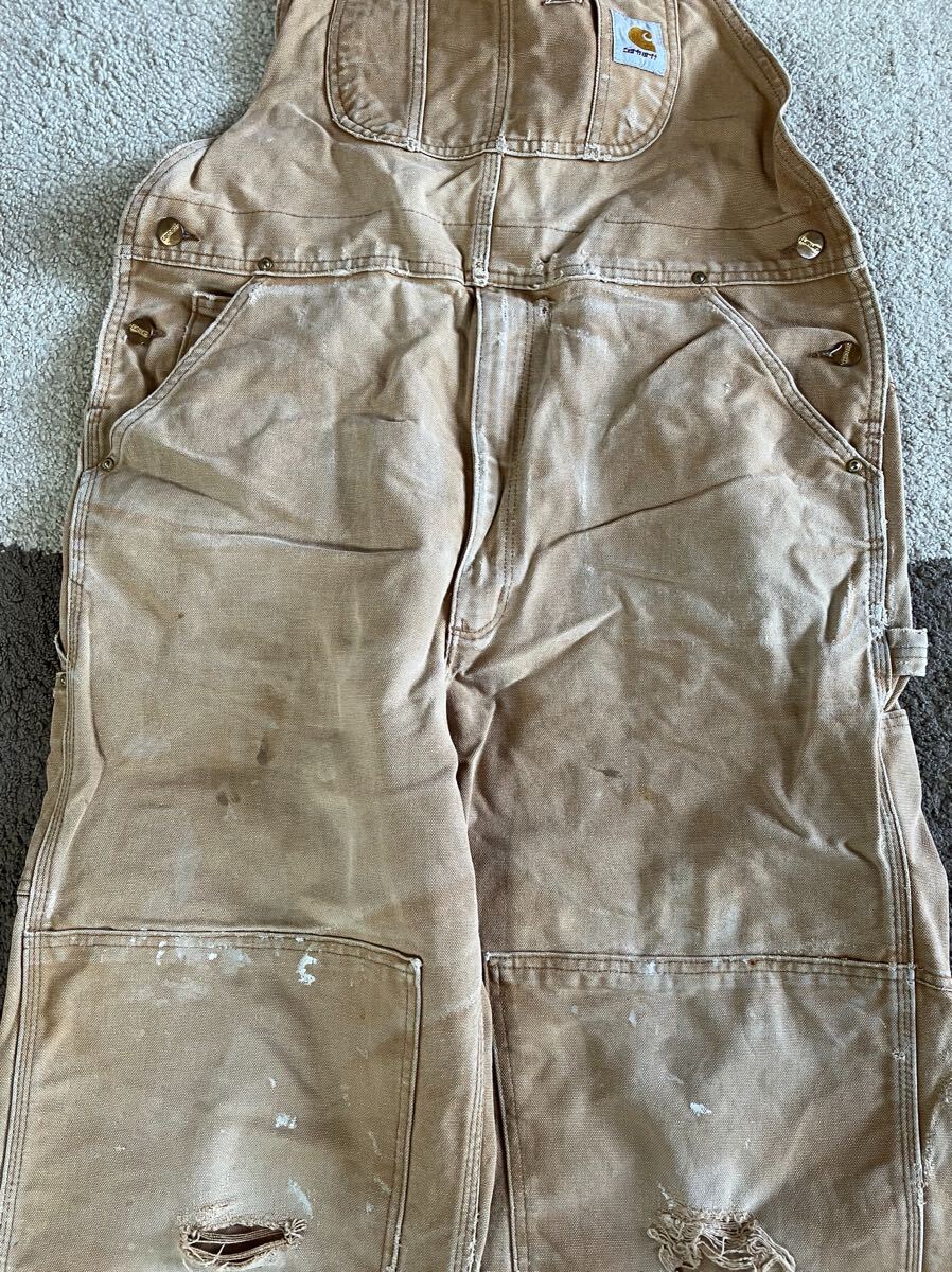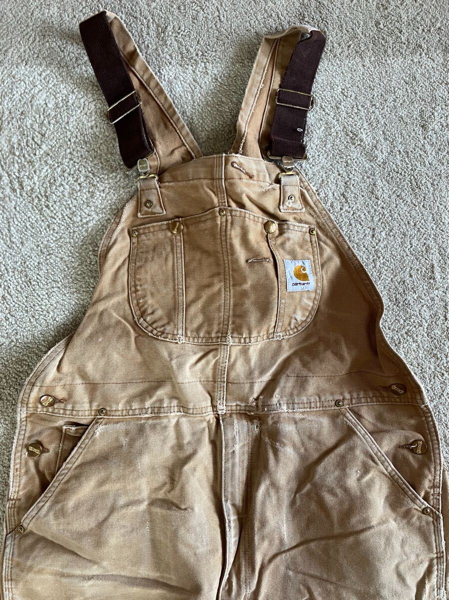 カーハートのダブルニーオーバーオールです。キルティングの裏地はないタイプになりますので、季節問わず履きやすいと思います。