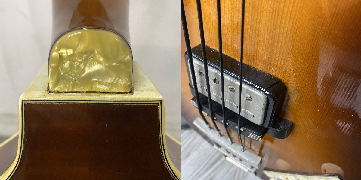 ◆動作◆ ・★アンプからの出力は確認できましたが、Vol1のノブにガリがございました。 ・★ネックに順反りが見られます。 ・★フレットの残りは7割ほどで、演奏に支障のない程度です。 ・★弦長(スケール):76cm ・★弦高:1弦 3.2mm 4弦 3.2mm(12フレット) ・★ナット幅:41mm ・★専門店ではない為、音の数値計測などはおこなっておりませんのでご了承ください。 ・★修理前提もしくは部品取りでお考え下さい。 |