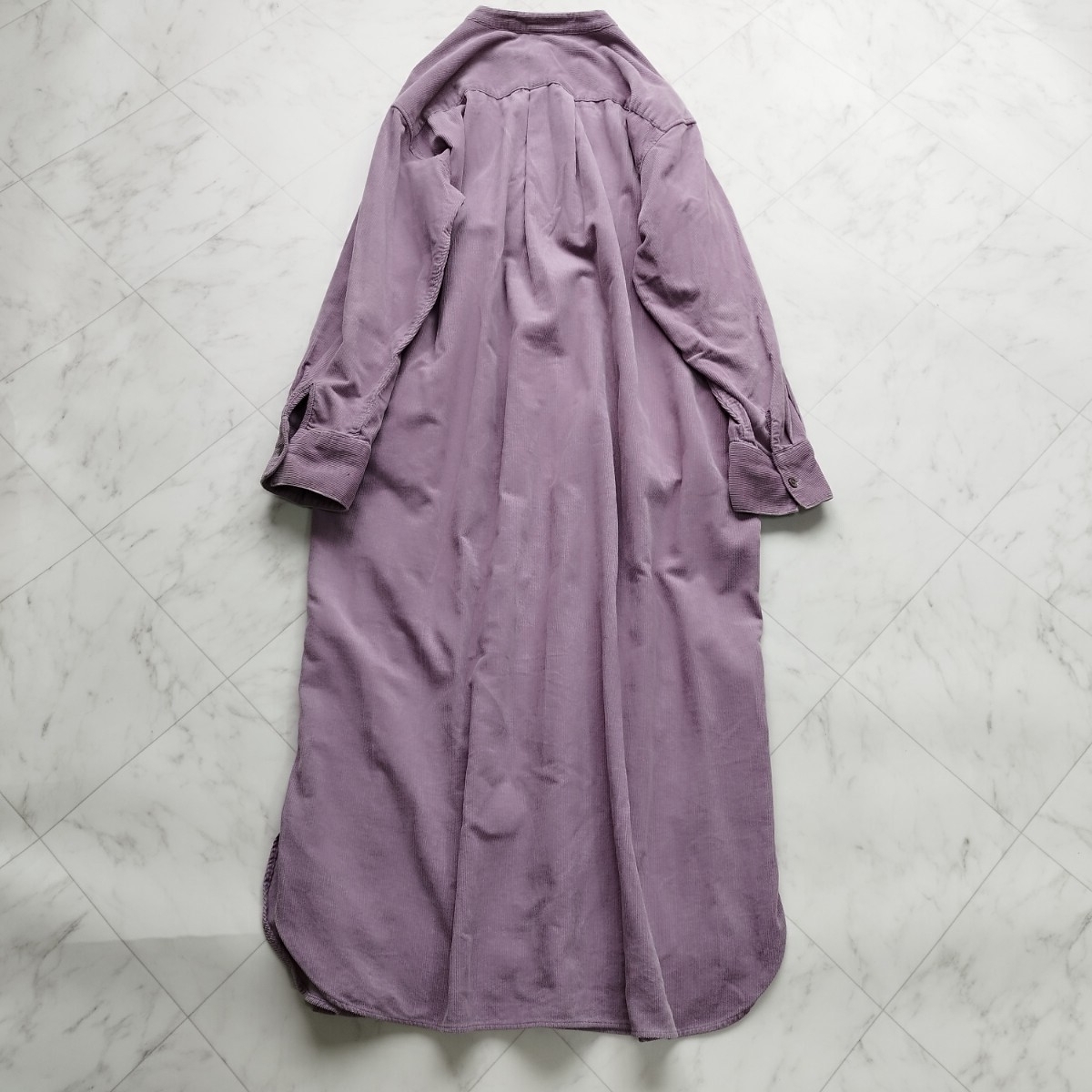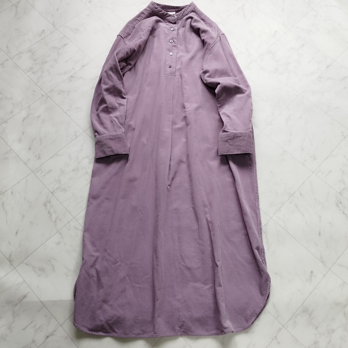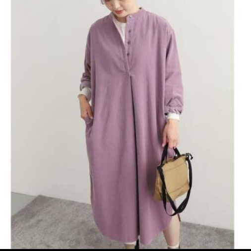 季節を感じさせる膨らみのあるコーデュロイ生地で、ノーカラーのシンプルなワンピース