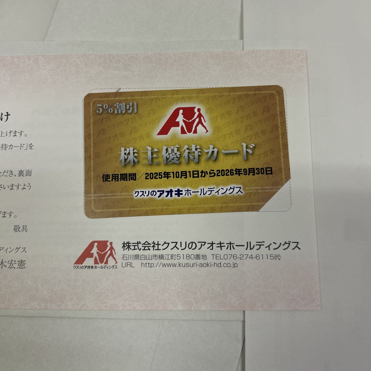 送料無料 クスリのアオキ 株主優待カード 5%割引 2026年9月30日まで
