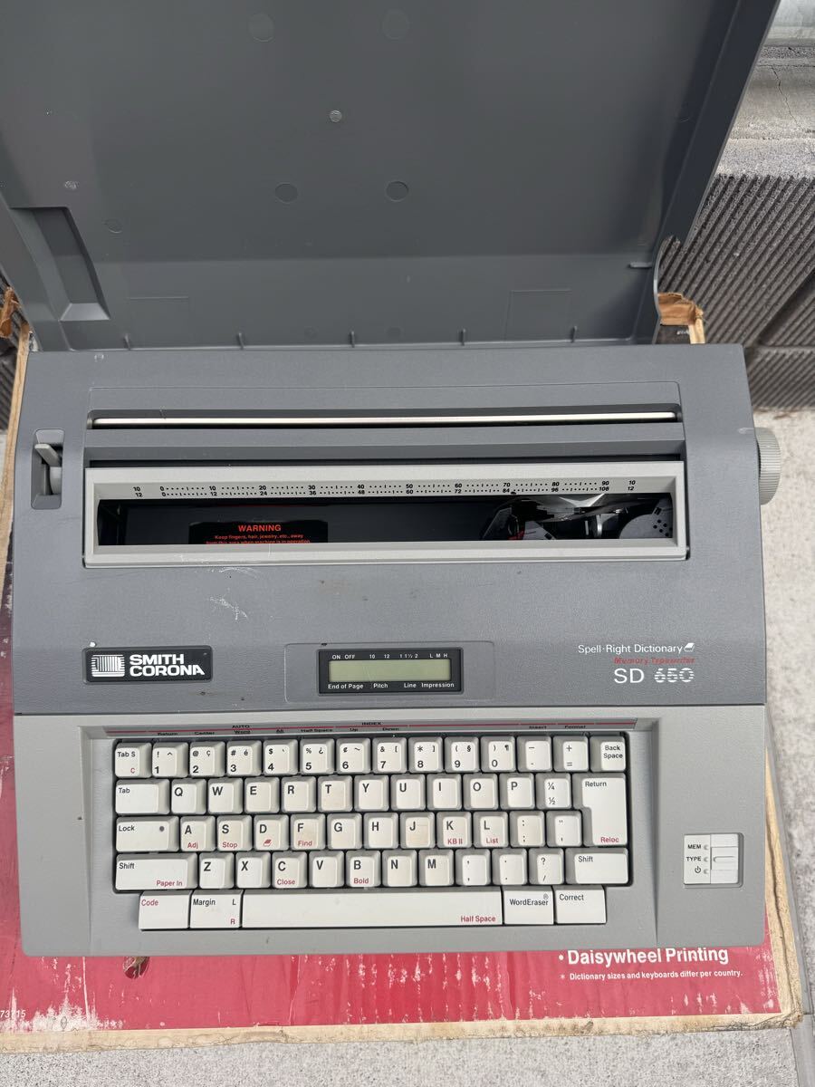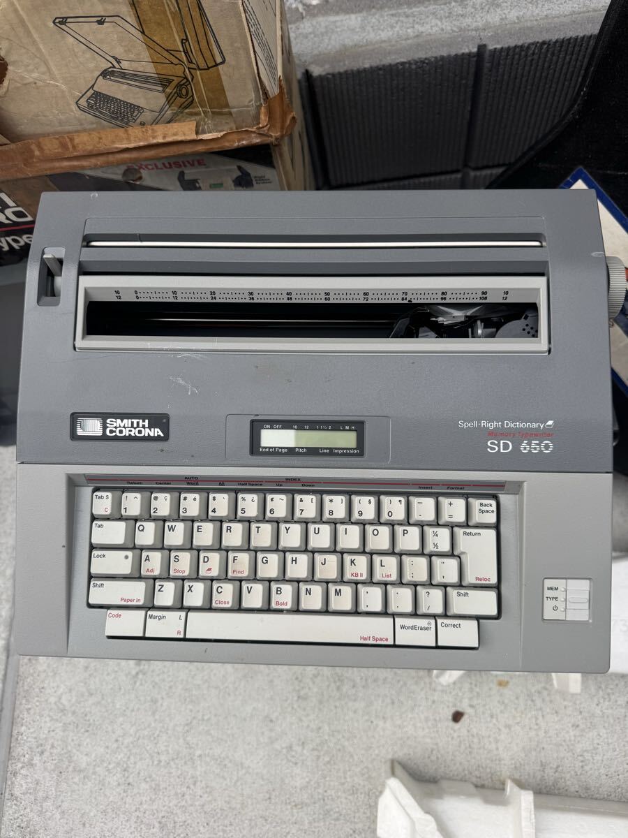 This is a **SMITH CORONA SD650 Electric Typewriter (Made in USA)**.