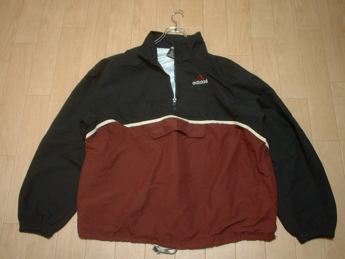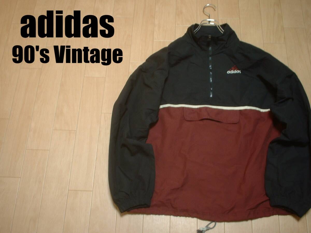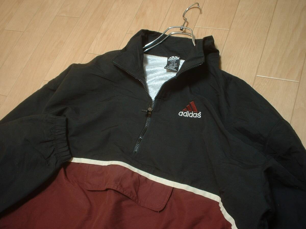 90sビンテージadidasハーフジップナイロンジャケットLアノラック正規アディダスプルオーバーウインドジャージトラックトップパフォーマンス