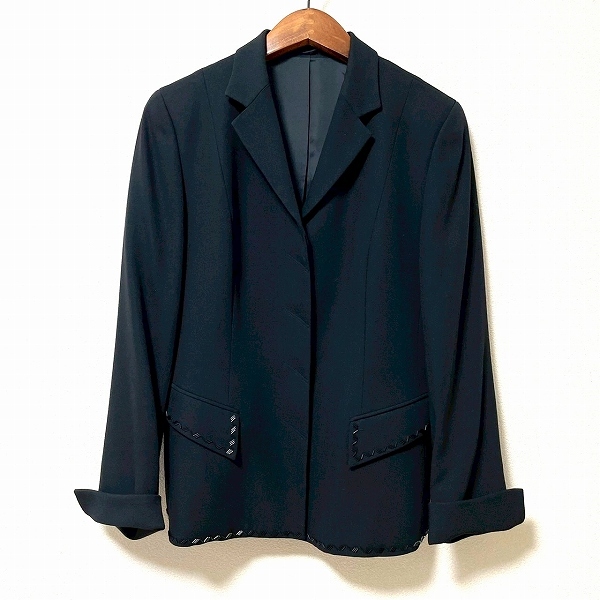 ●商品名(タイトル):#anc レリアン Leilian ジャケット 9 黒 ビーズ ウール レディース [945840]