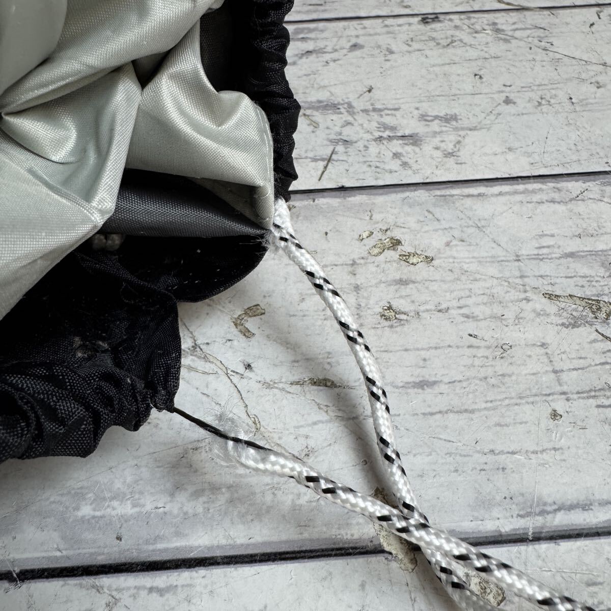 収納袋の紐が劣化して為、気になる方はご購入者様にて紐の交換をおすすめいたします。