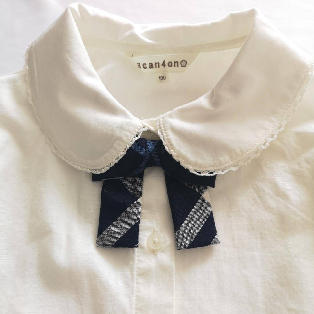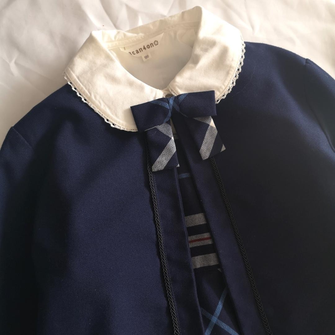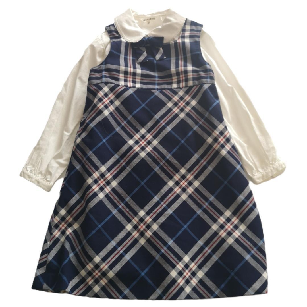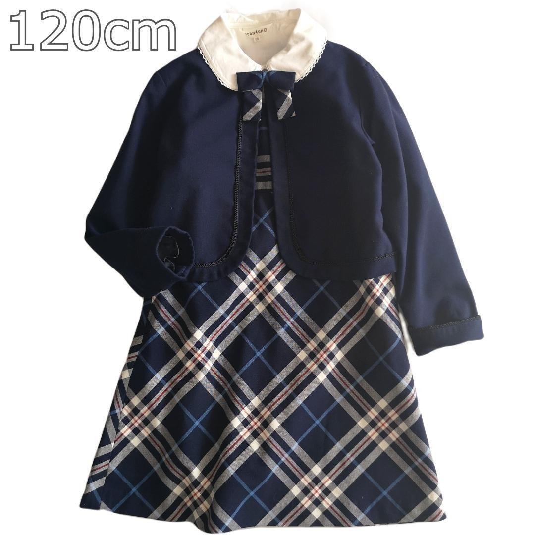 サンカンシオン 3can4on 120cm フォーマル セットアップ ジャケット ワンピース ブラウス 3点 紺 卒業式 チェック