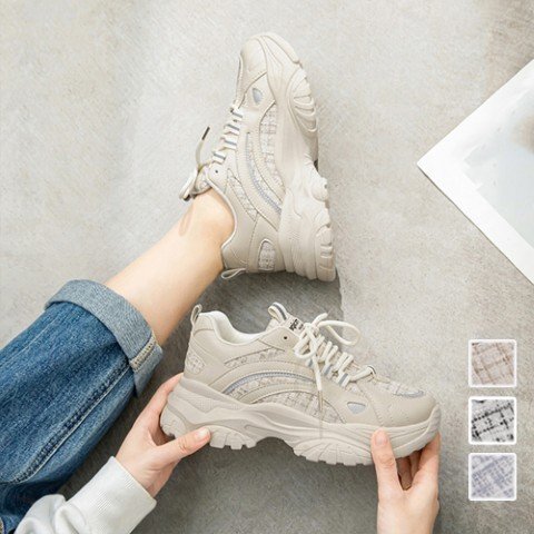 今季注目の配色デザイン、ソールがトレンド感があってお洒落な韓国風厚底ダッドスニーカー