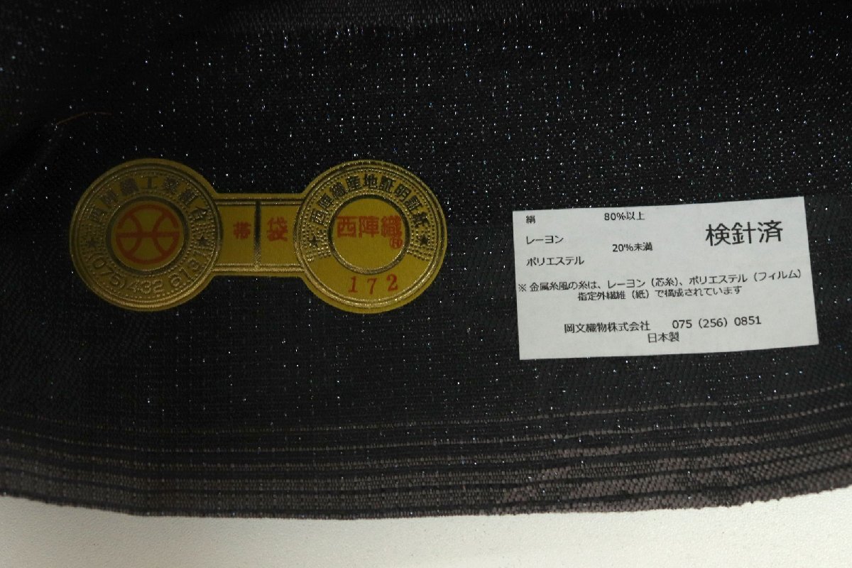 落款・証紙 | 西陣織工業組合 証紙No,172 岡文織物 謹製 | |