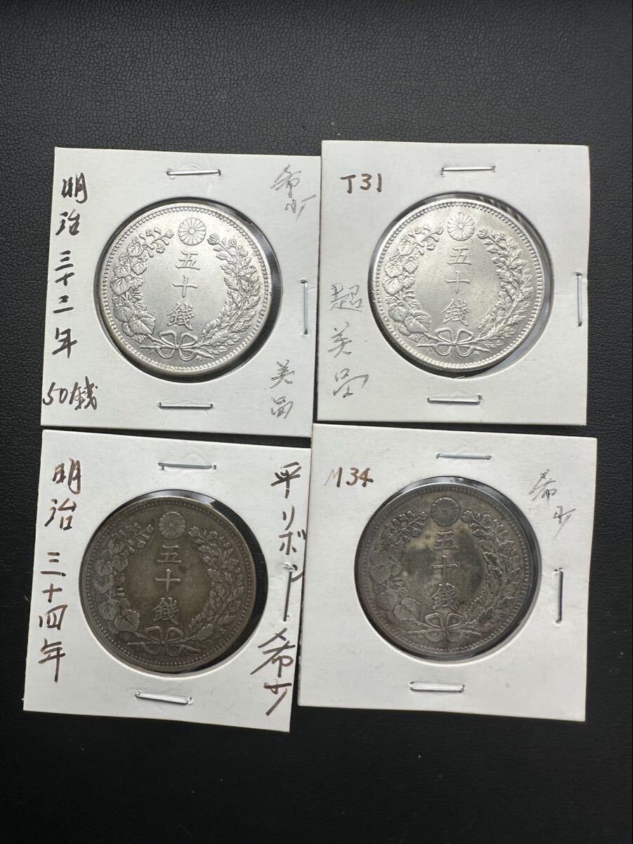 こちらのお品は明治31.33.34年の50銭銀貨 4枚おまとめの出品です。