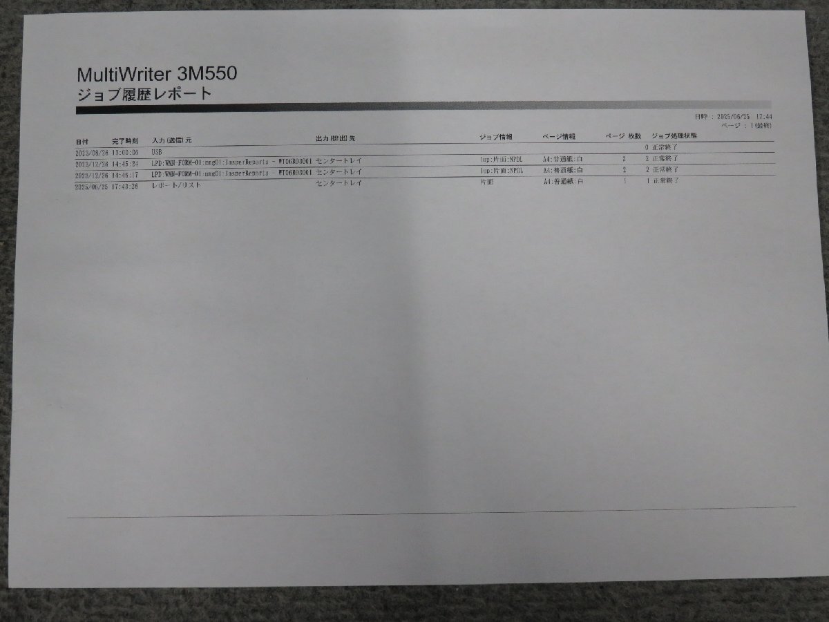 ・プリンター集計レポート、ジョブ履歴レポートの印刷を確認しました。 ※印刷メーターはテストのため、多少増えることがございます。 |
