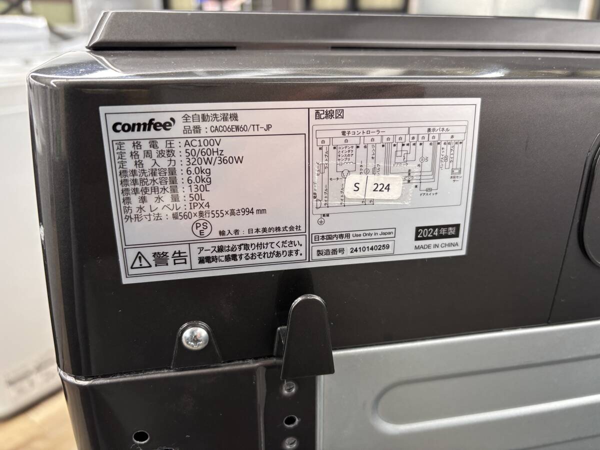 【美品】大阪送料無料★3か月保障付き★洗濯機★コンフィー★6kg★2024年★CAC06EW60/TT-JP★S224