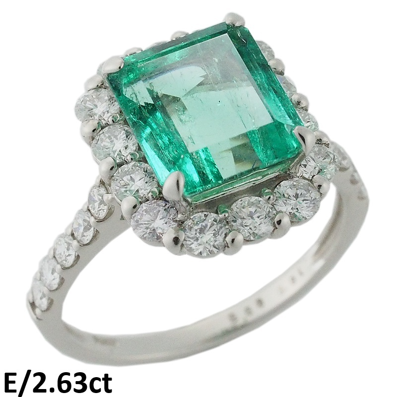 詳細:ノーブランド エメラルド/2.63ct ダイヤ/0.91ct Pt900 リング 12号 鑑別書付き 仕上済