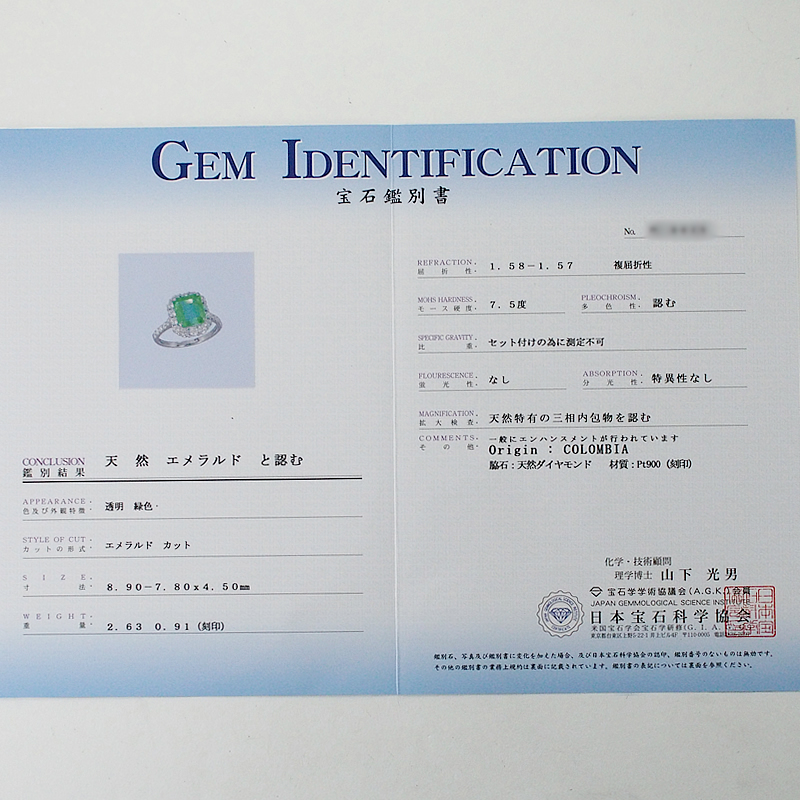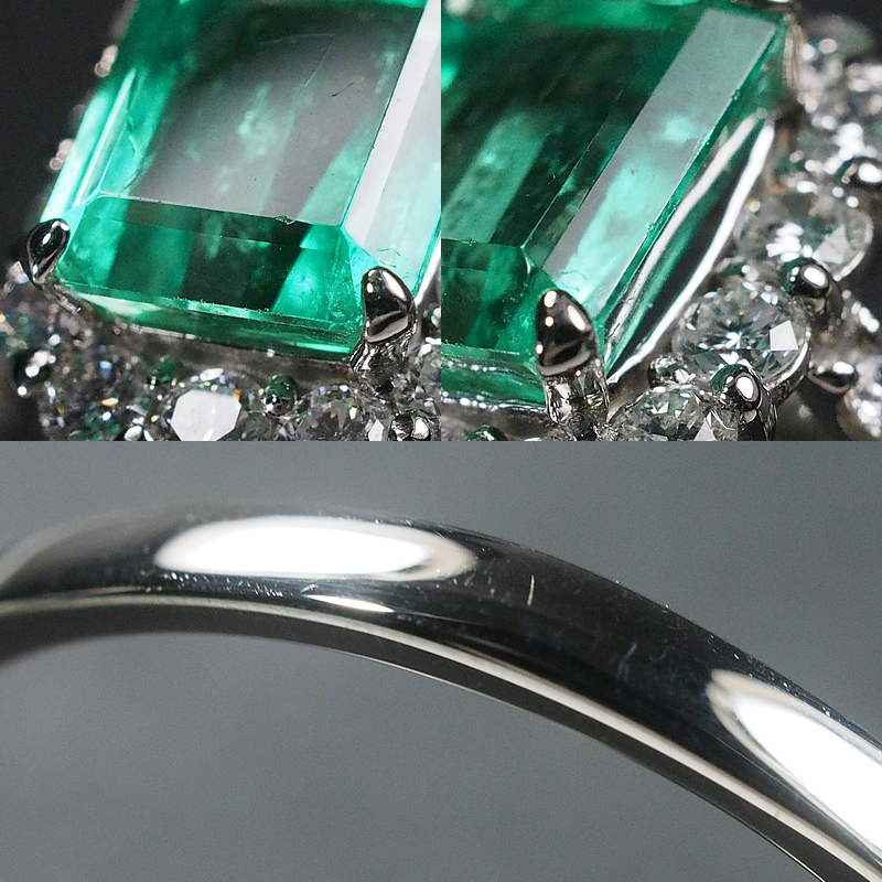 備考:ルーペで見るとエメラルドにわずかな傷、地金部分にスレが見受けられますが、大きく目立つような傷はなく、状態の良いお品物となっております。