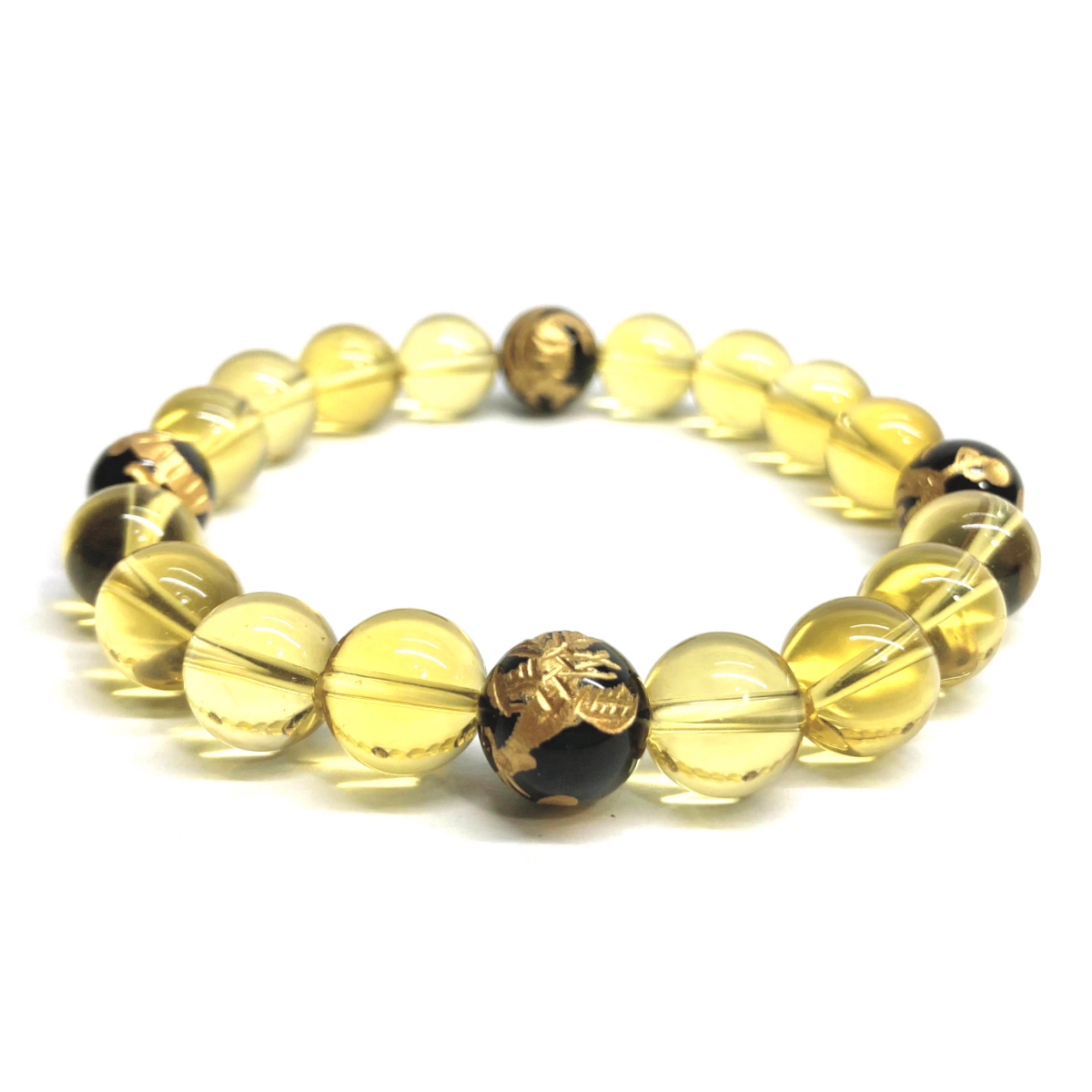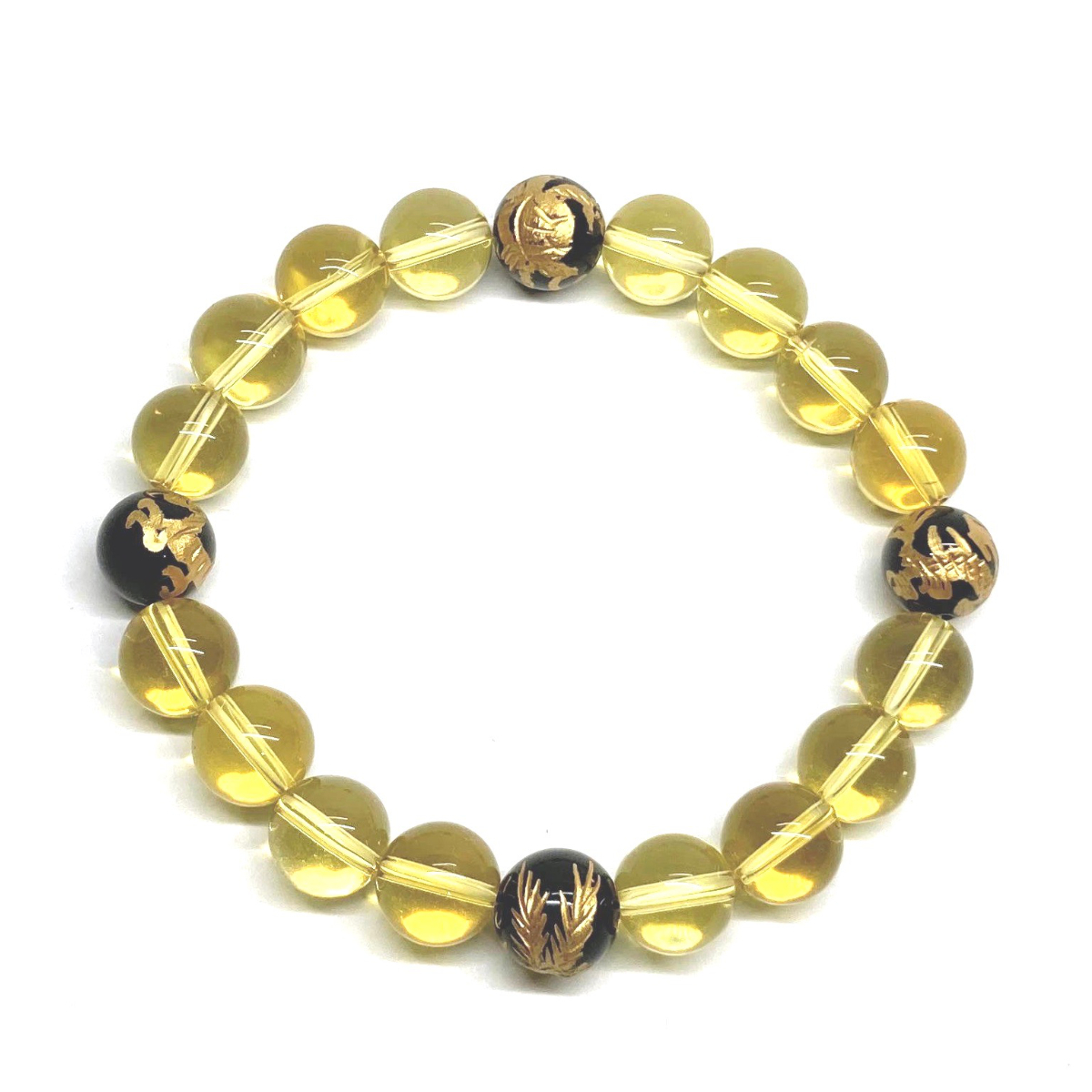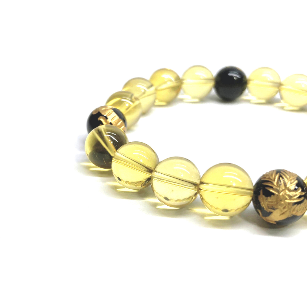 10mm 四神獣金彫オニキス×シトリン パワーストーン ブレスレット天然石 運気上昇 開運 金運 恋愛運 青龍 白虎 玄武 朱雀 ☆