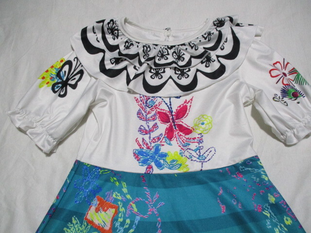 ブランド名:ノーブランド サイズ 150 着丈約82cm 身幅約36cm ウエスト幅約32cm 色:白・青 状態:中古です。大きなダメージなく、きれいです。後ろ上部中央にスリットあり、ループで留めるボタン付き。2段フリルの衿付。ポケットなし。裏地なし。ポリエステル65%綿35% 中古です。細かいことを気になさる方、完璧なものをお求めの方は、入札をご遠慮ください。 | |||