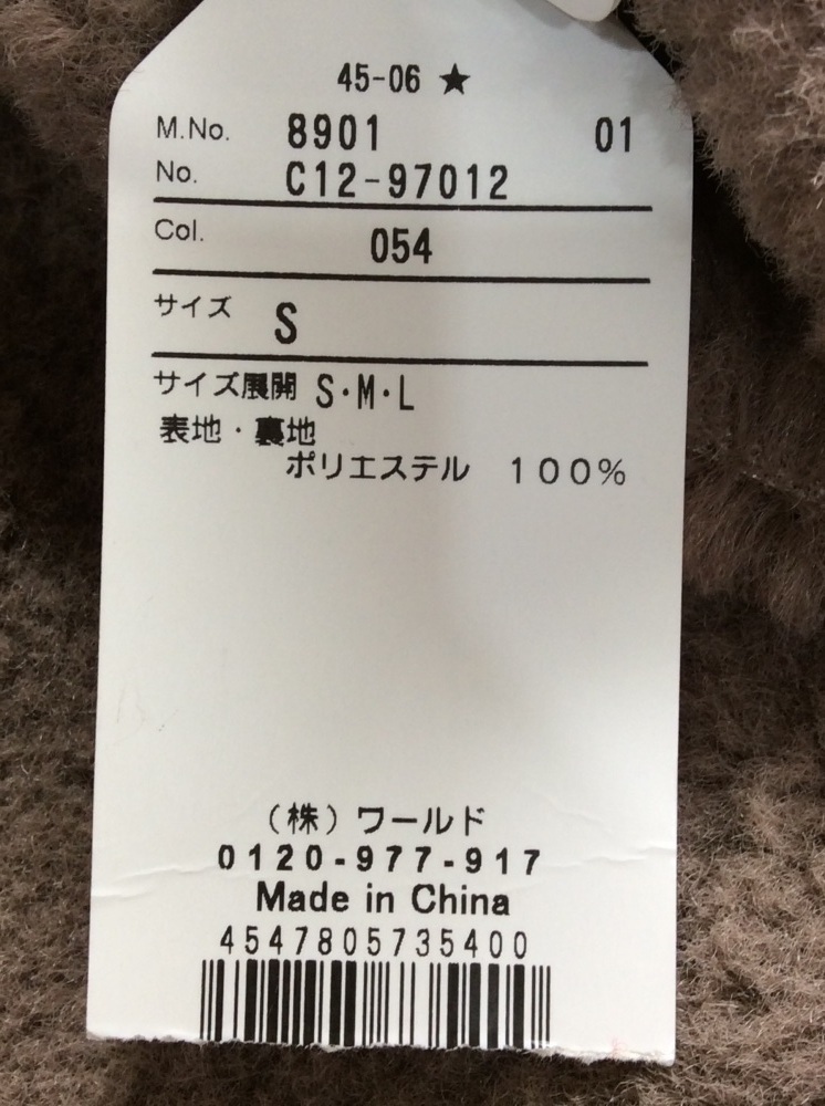 管理番号:40^127038 AG byアクアガール タグ付き モカ茶色モコモコノーカラーコート 表示サイズ:S 実寸(参考)
