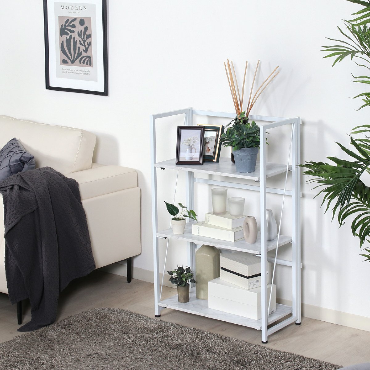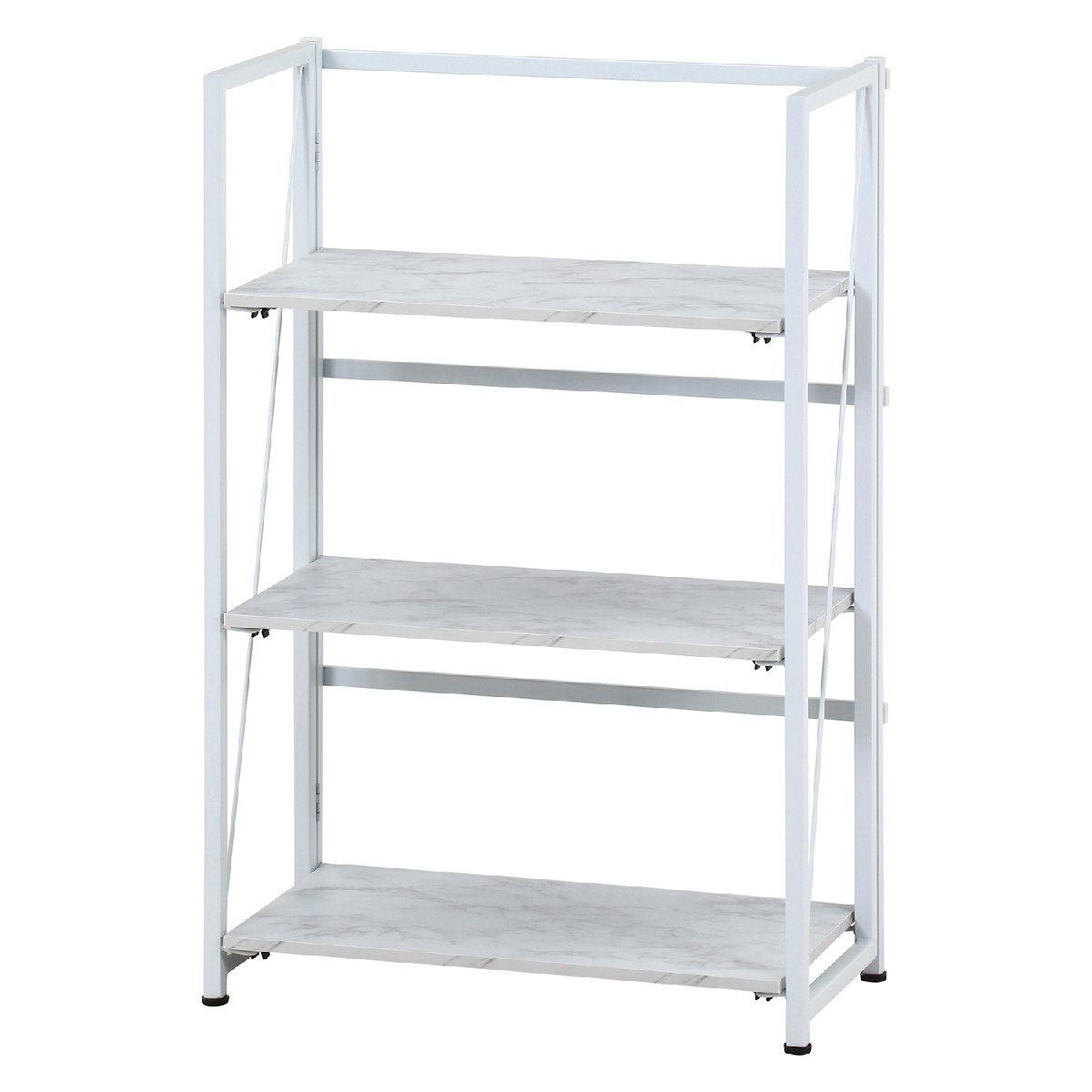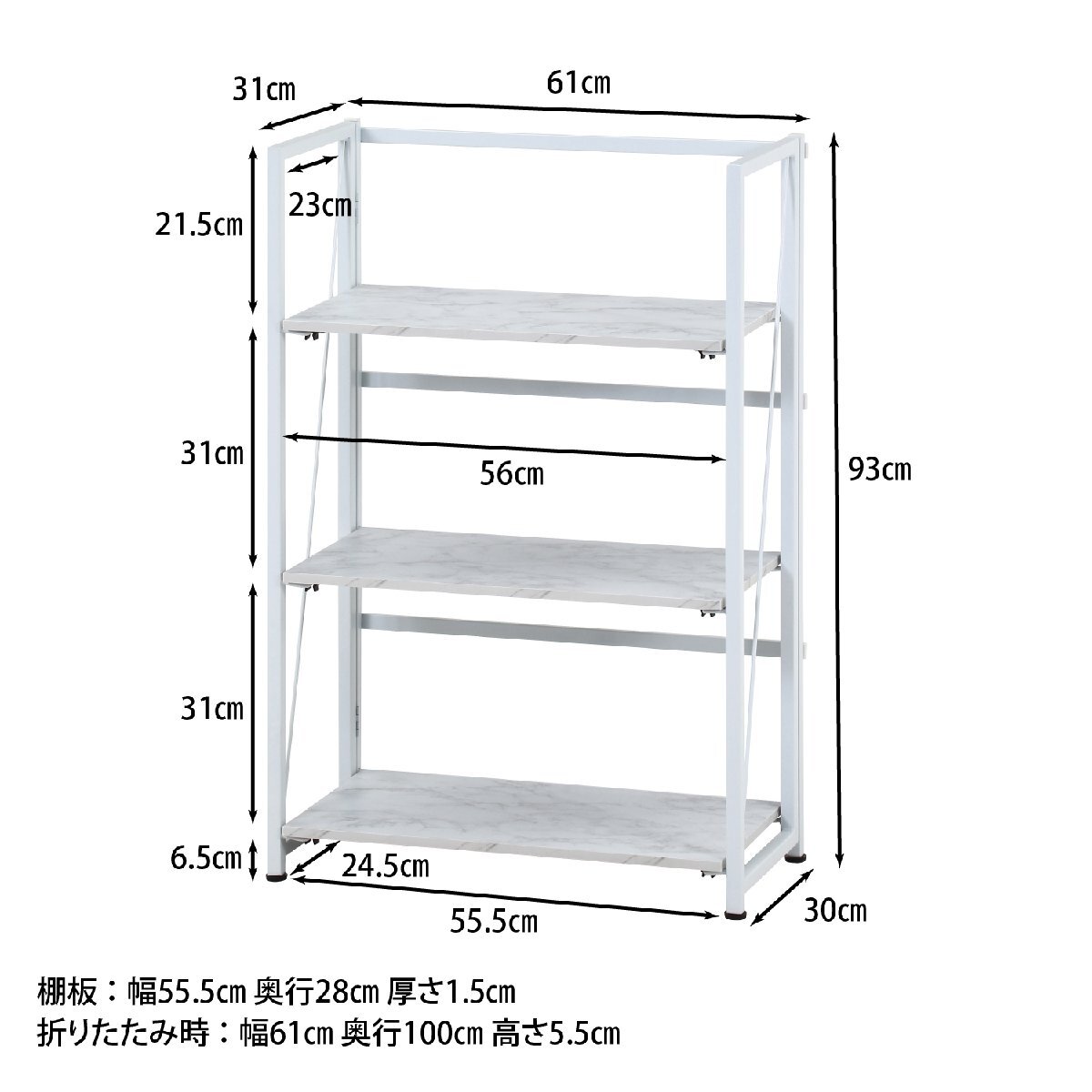 備 考 | ■本棚から飾り棚としても使えます。 ■パソコン作業やキッチン作業サイドにぴったりです。 ■使わない時は折り畳んで収納できます。 |