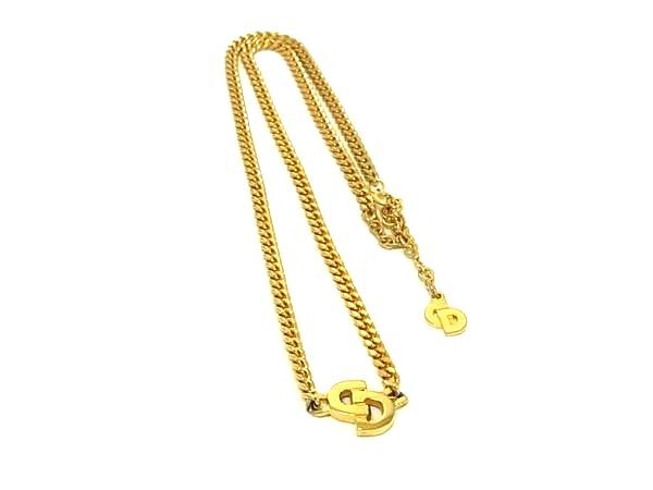 1円 ■美品■ ChristianDior クリスチャンディオール ヴィンテージ CDロゴ ネックレス ペンダント アクセサリー ゴールド系 FR5814
