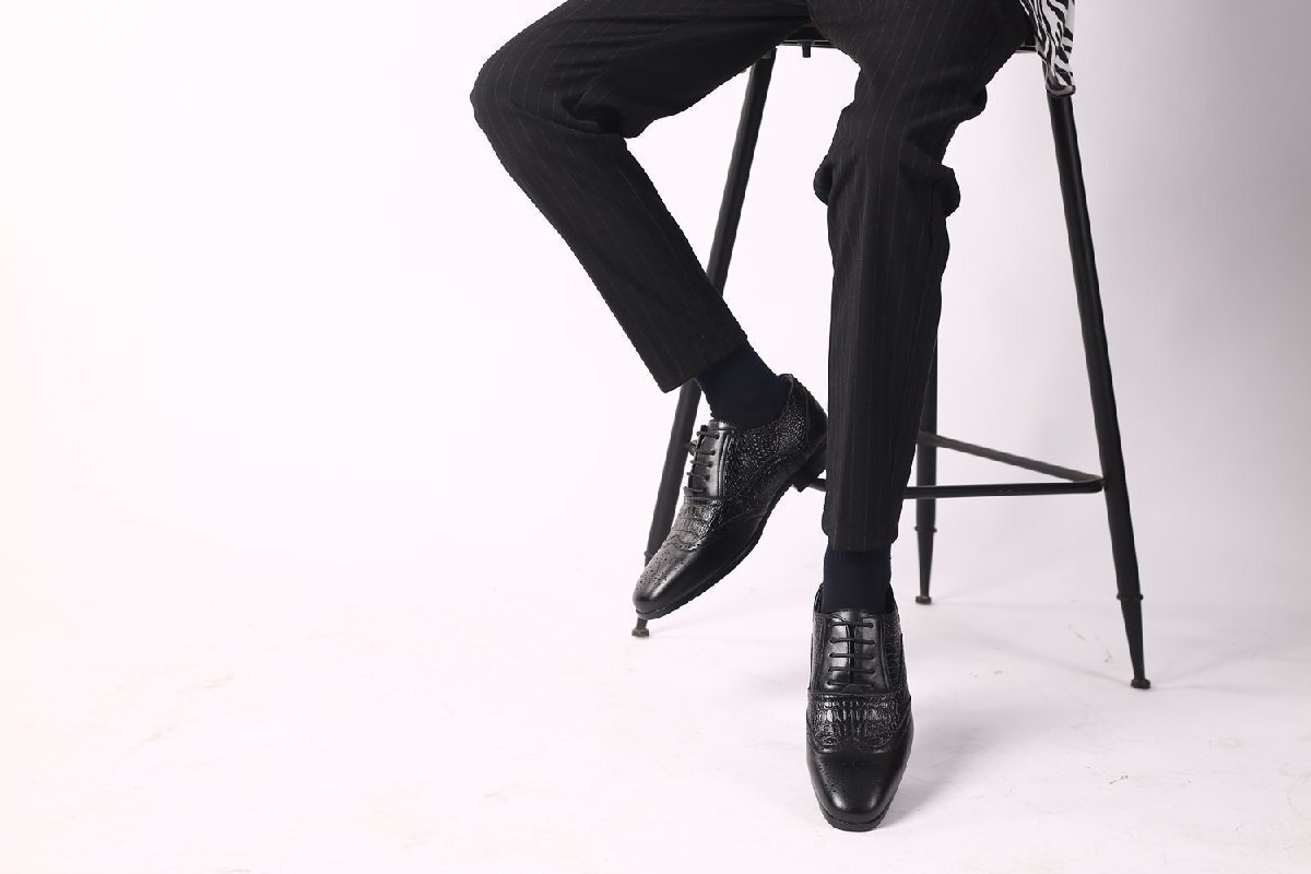 ビジネスシューズ メンズシューズ シューズ 靴 フォーマル ロングノーズ ローカット 紐靴 紳士靴 ワニ柄 ブラック 26cm