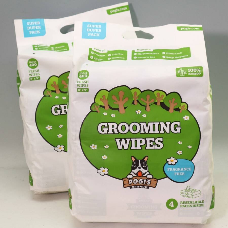 POGI 犬用 ウェットシート 400枚入り 2袋セット 無香料・竹由来でお肌にやさしい 使用期限2027/11◆271f32