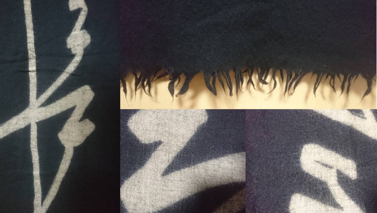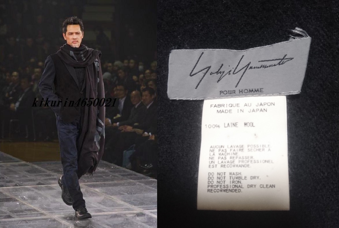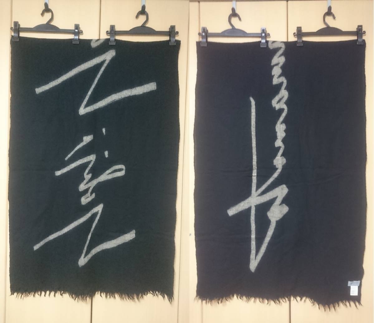 ヨウジヤマモト オム★ロゴ抜染 縮絨素材ストール★黒×ベージュ