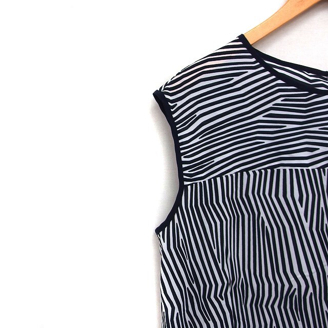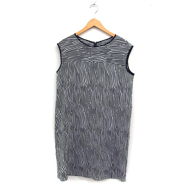 アイシービー iCB 柄 ワンピース ノースリーブ ロング ストレートライン 大きいサイズ 42 ブラック 黒 ホワイト 白 /FT3 レディース