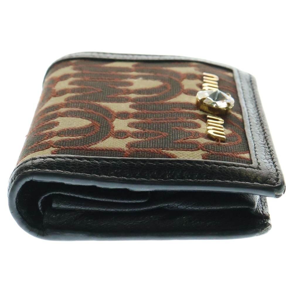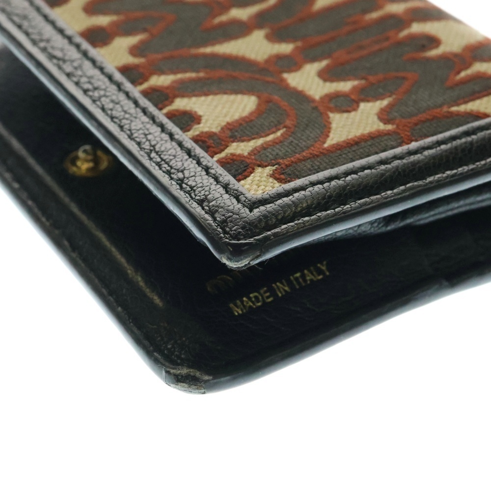 ミュウミュウ エムエムパリス 二つ折り財布 コンパクトウォレット コインケース ブラック×ベージュ×レッド キャンバス×レザー ゴールド