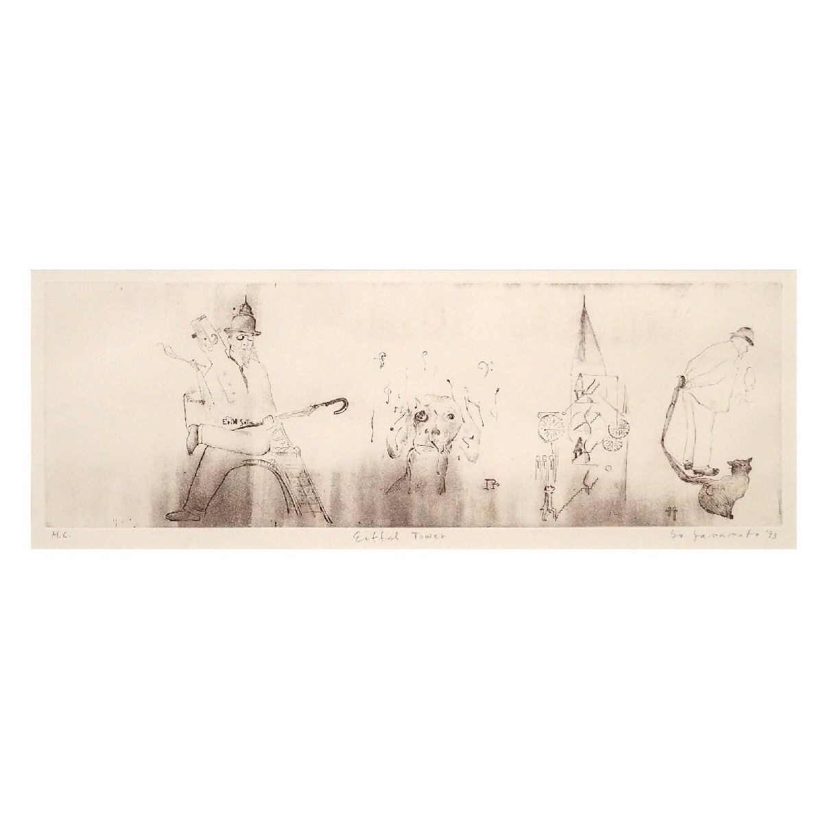 「Eiffel Tower」山本容子による1993年作、直筆サイン入りのエッチング、横長の作品です。