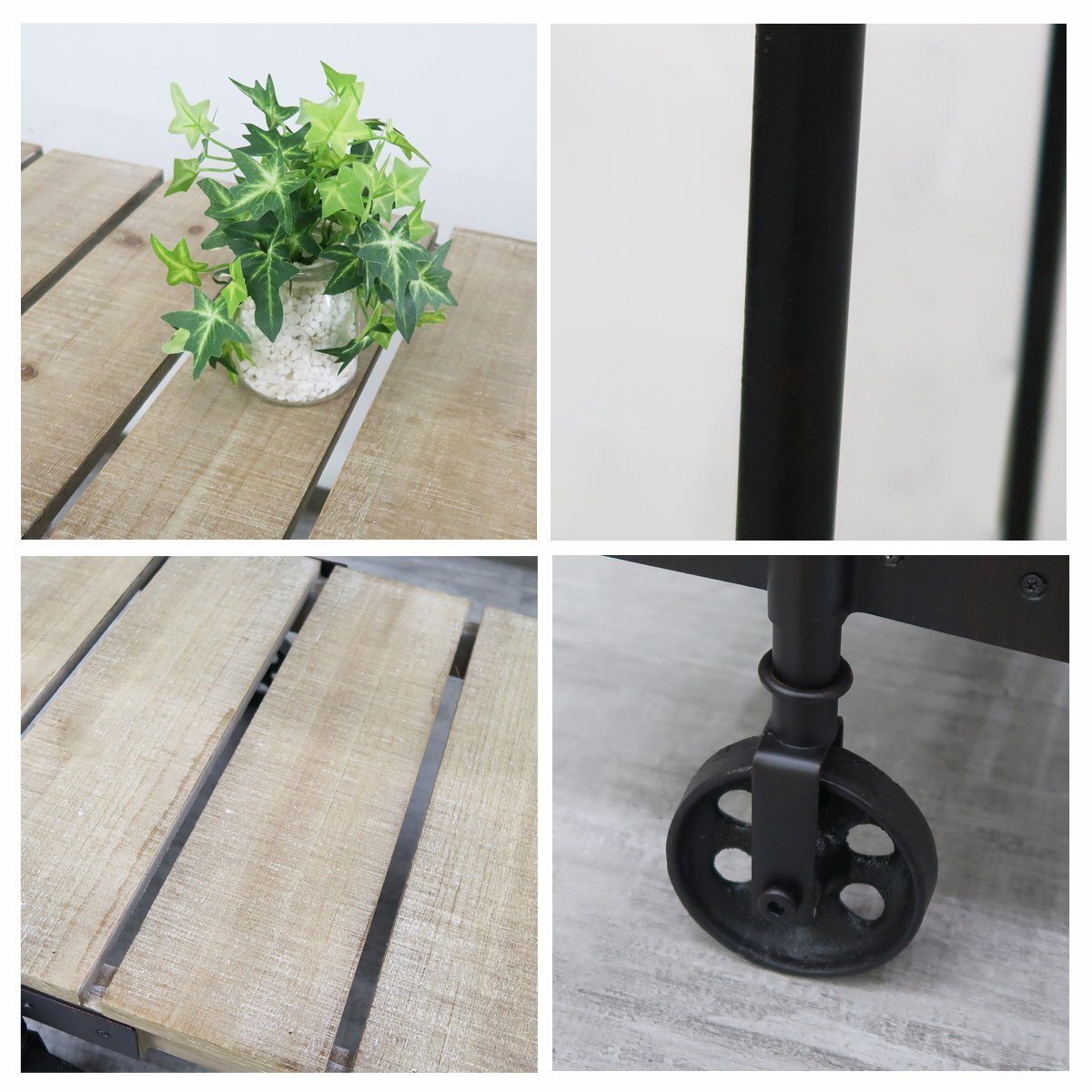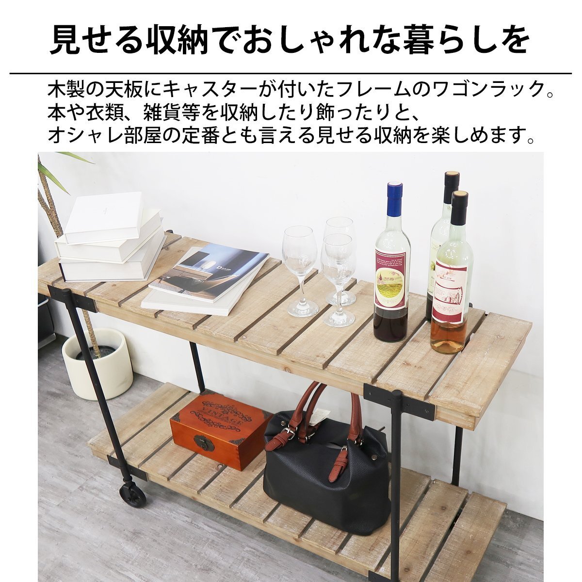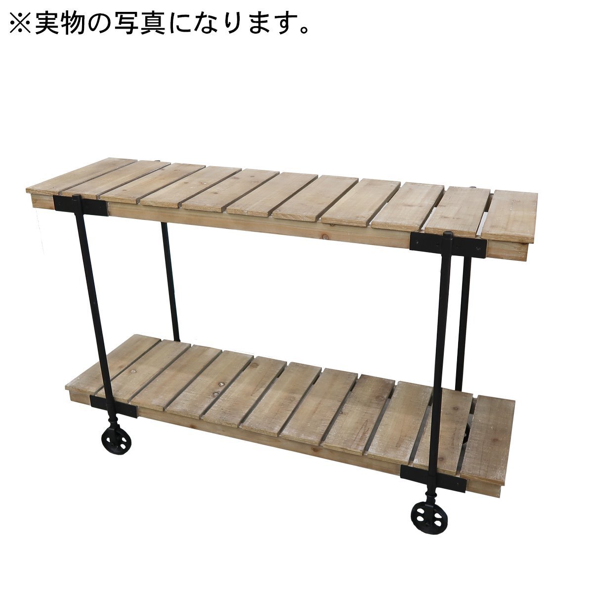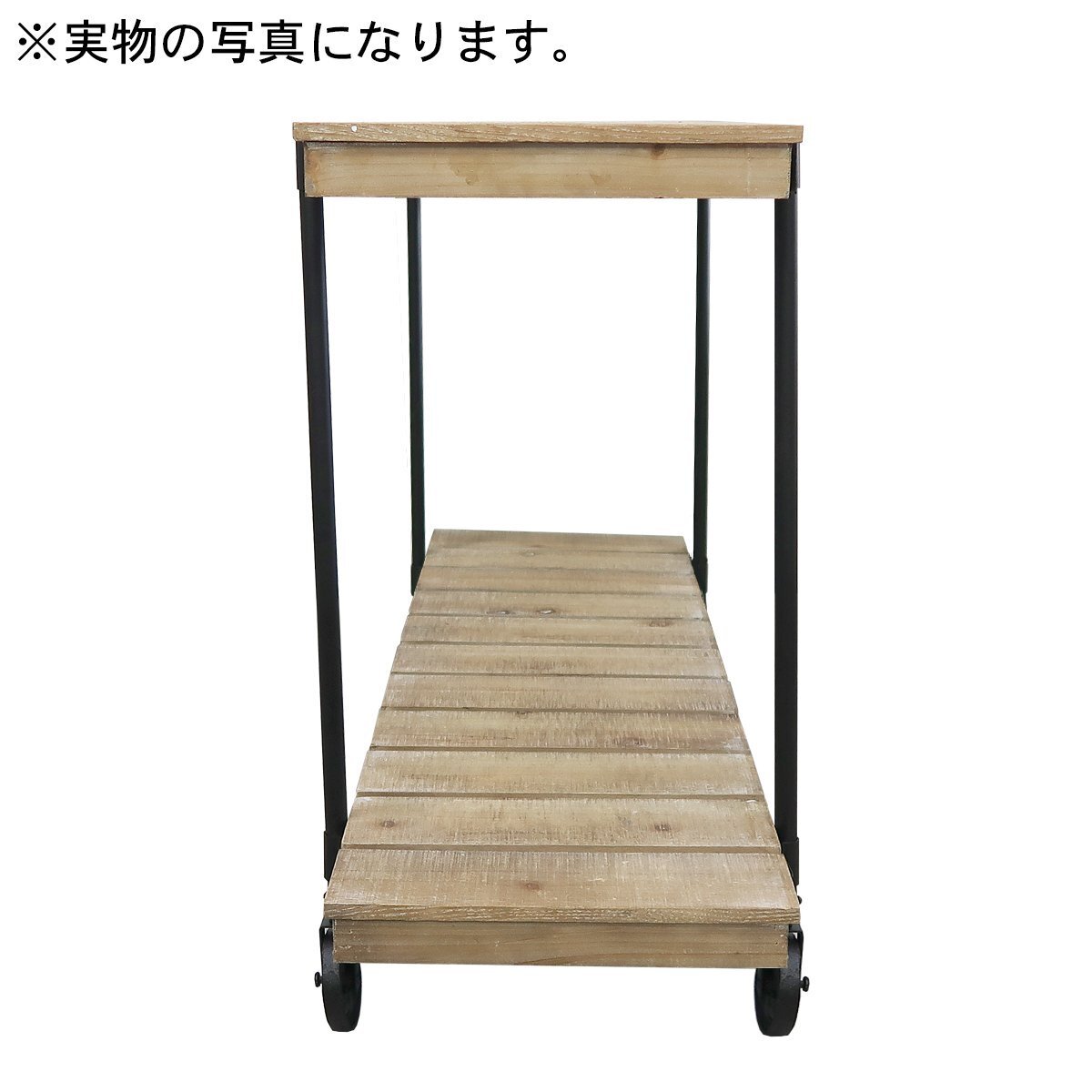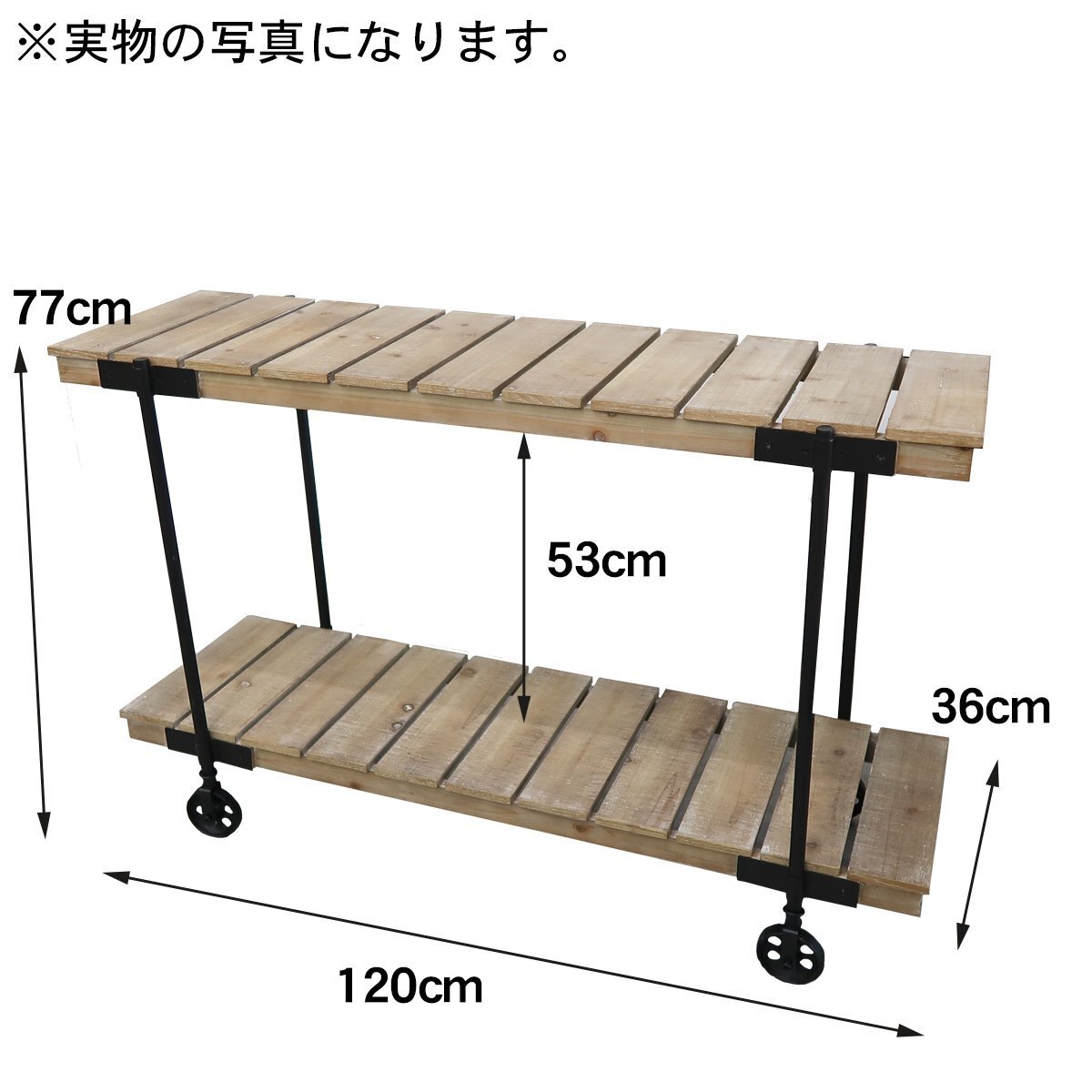 ![]() ビンテージ感溢れる木目の棚板と移動に便利なキャスター付きのワゴンラック。 オブジェや植物、小物等を乗せて飾ったりして オシャレ部屋の定番とも言える見せる収納を楽しめます。 圧迫感の無いロータイプでスリム設計の程よいサイズ感。 スッキリとした印象で一人暮らしの部屋にもおすすめ! 移動に便利なキャスターは設置場所を移動したい時の他、 物を運ぶ用のワゴンとしても使えます! ビンテージ風味のある木目にマットな質感のフレームの 異素材のコンビネーションがシンプルなフォルムをより引き立てています。 背板や側板のないオープンシェルフタイプ。 背面と側面をふさがないから窓際や壁際に置いても光を通し、お部屋が暗くなりません。 棚奥の壁面が見えることでお部屋が広く感じられる効果もあります! ・商品サイズ:幅120cm×奥行き36cm×高さ77cm ●材質● 棚部分:木製 フレーム部分:スチール |