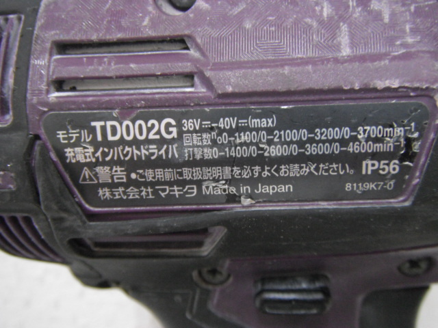 | 商品説明 | マキタ 40V 充電式インパクトドライバ TD002G 本体のみです。 |
