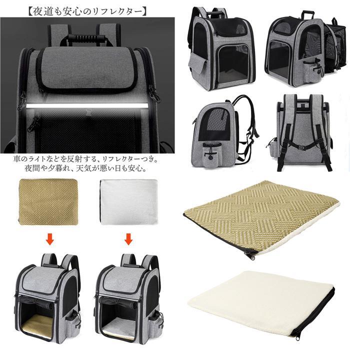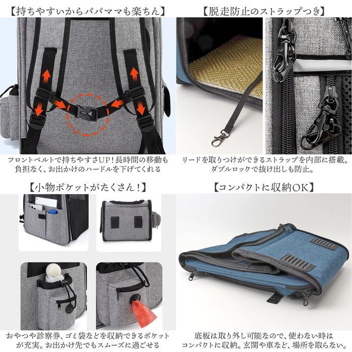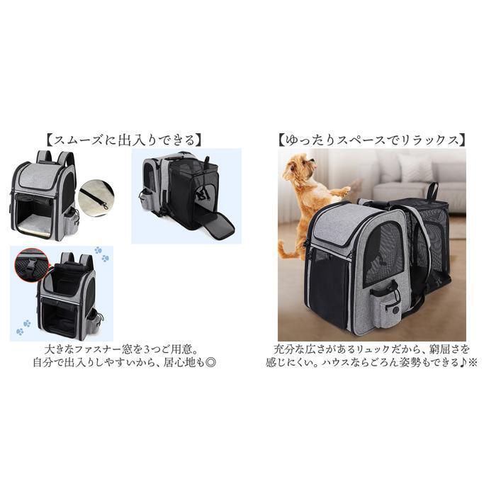 商品説明 | ・・【キャリーもハウスもこれ1つで◎】 ・お出かけ、旅行、通院、災害時に大活躍する「ペットリュック ペットキャリーバッグ」が登場。 ・【お顔が見える窓がたくさん】 ・いろんな角度からペットの様子を確認できるメッシュ窓を多数配置。通気性も良く苦しくない。 ・【拡張するとペットハウスに!】 ・お部屋が広くなる拡張タイプ。必要に応じて出したりしまったりでき、災害時にも活躍。 ・【スムーズに出入りできる】 ・大きなファスナー窓を3つご用意。自分で出入りしやすいから、居心地も◎ ・【ゆったりスペースでリラックス】 ・充分な広さがあるリュックだから、窮屈さを感じにくい。ハウスならごろん姿勢もできる♪ ・※耐荷重15キロ ・【持ちやすいからパパママも楽ちん】 ・フロントベルトで持ちやすさUP!長時間の移動も負担なく、お出かけのハードルを下げてくれる ・【脱走防止のストラップつき】 ・リードを取りつけができるストラップを内部に搭載。ダブルロックで抜け出しも防止。 ・【小物ポケットがたくさん!】 ・おやつや診察券、ゴミ袋などを収納できるポケットが充実。お出かけ先でもスムーズに過ごせる ・【コンパクトに収納OK】 ・底板は取り外し可能なので、使わない時はコンパクトに収納。玄関や車など、場所を取らない。 ・【夜道も安心のリフレクター】 ・車のライトなどを反射する、リフレクターつき。夜間や夕暮れ、天気が悪い日も安心。 |