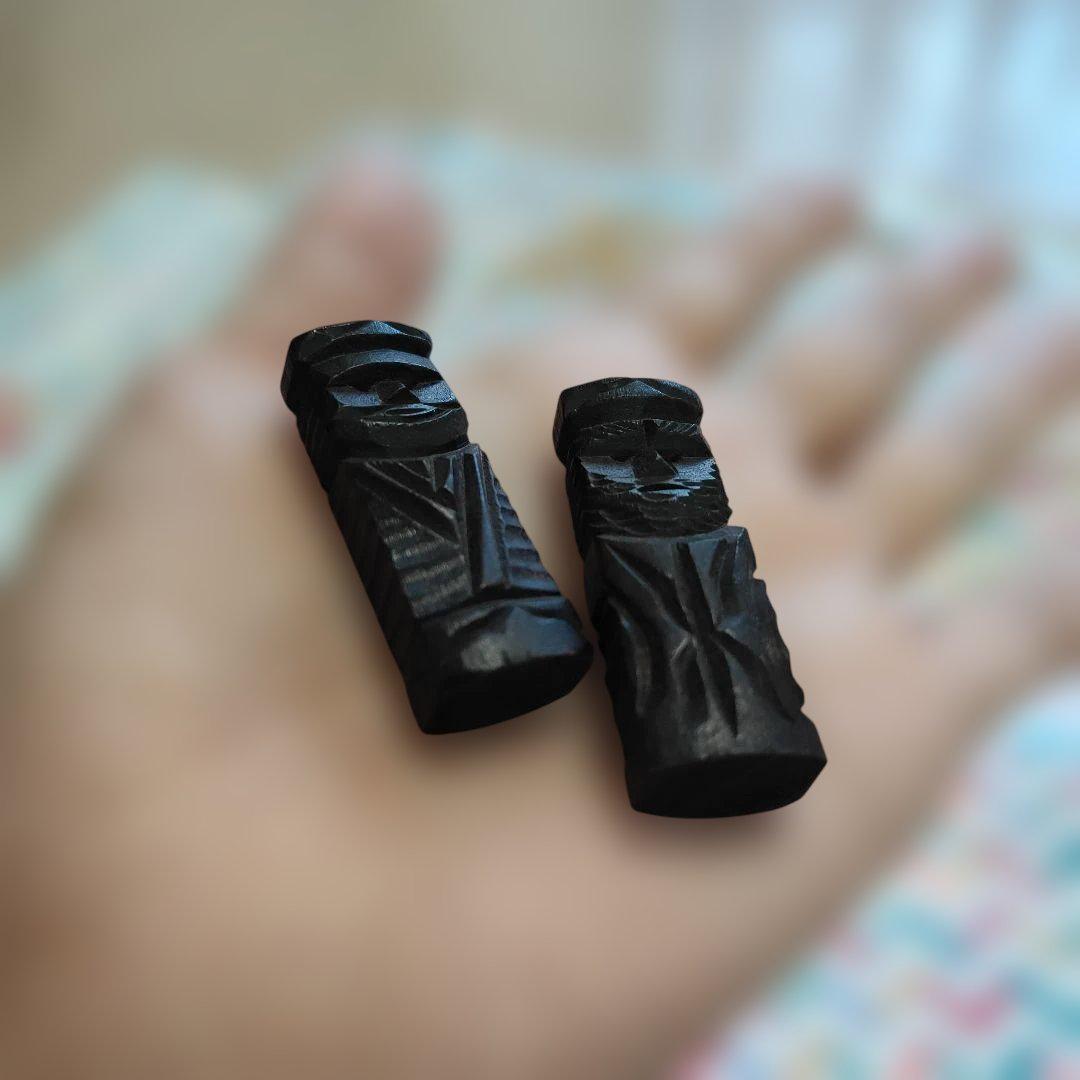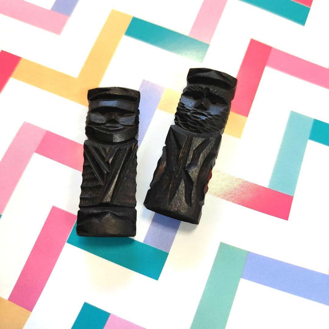 洞爺湖 コロボックル 木彫りミニチュア 1対 北海道 セット 味のある手彫り