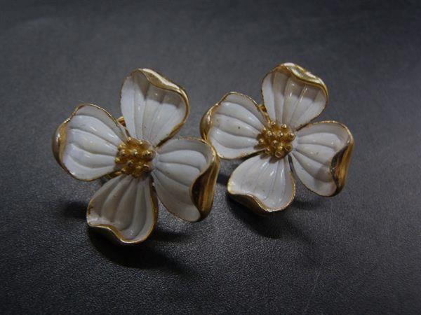 Trifari トリファリ ヴィンテージ ハナミズキ クリップ式 イヤリング アクセサリー レディース ホワイト系 DI9682