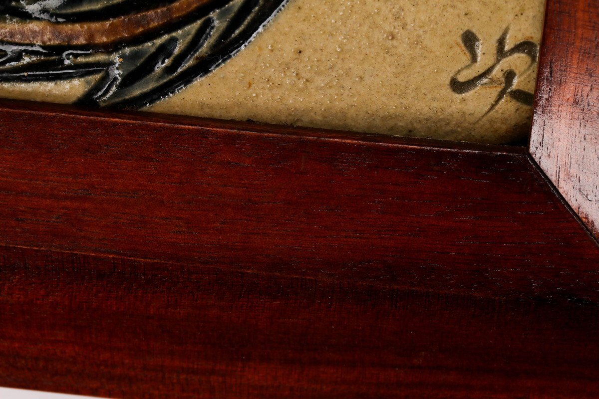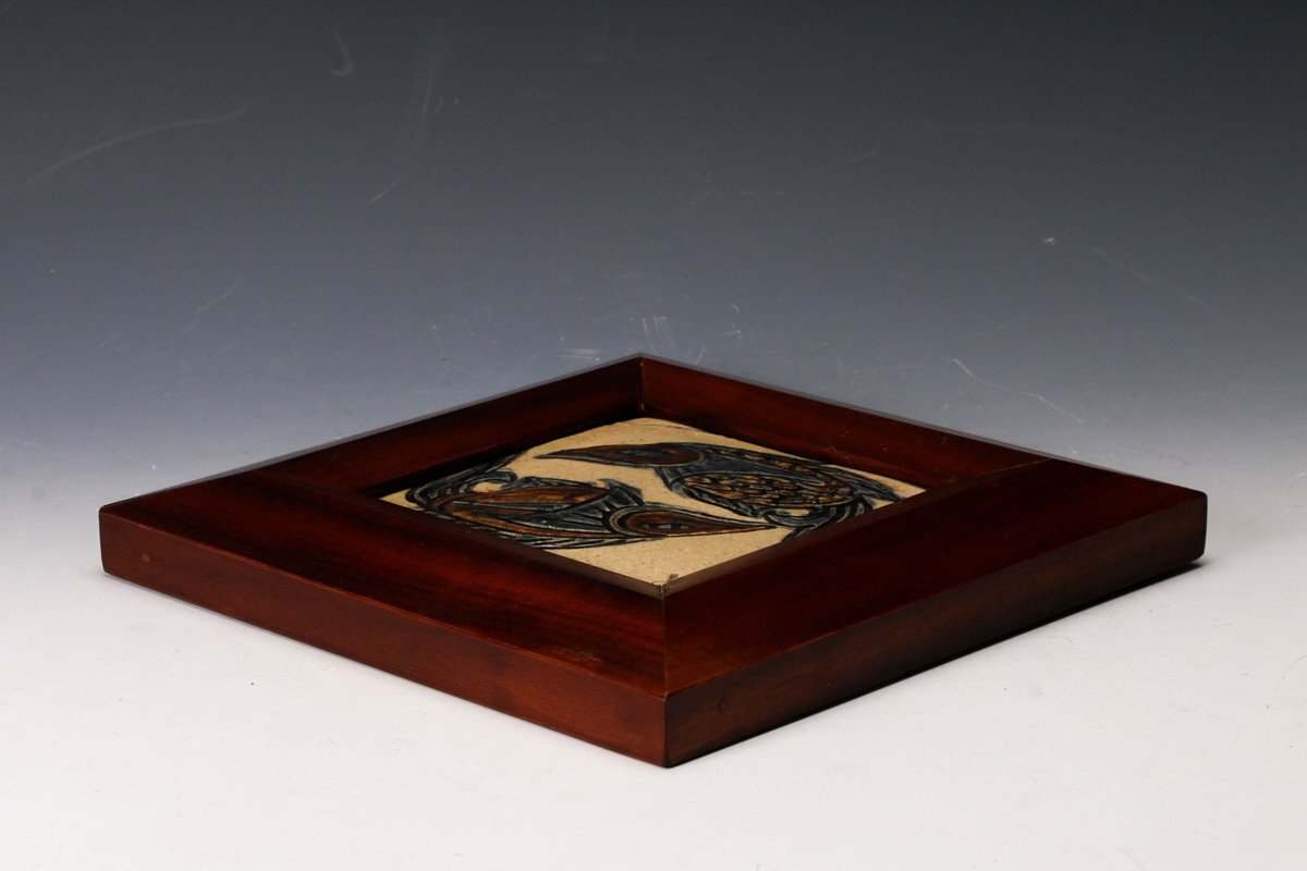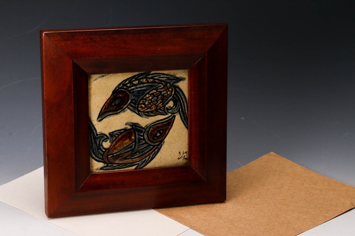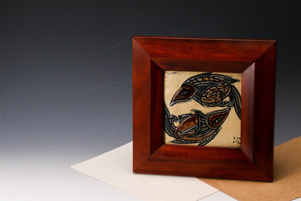 【佳香】人間国宝 金城次郎 双魚文陶板 額装 本物保証