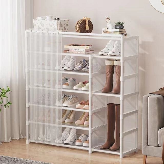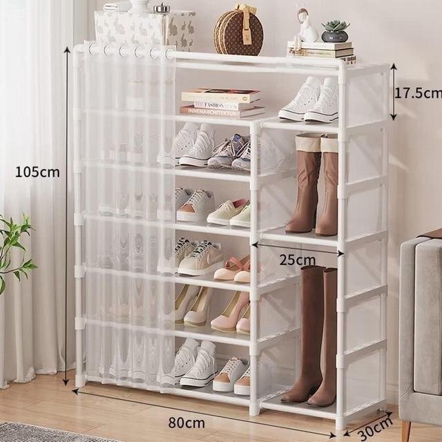 シューズラック 靴ラック 玄関収納ラック 大容量 小物置き 鍵置き カーテン付き 防塵 臭い遮断 7段階 最大25~30足収納 ホワイト