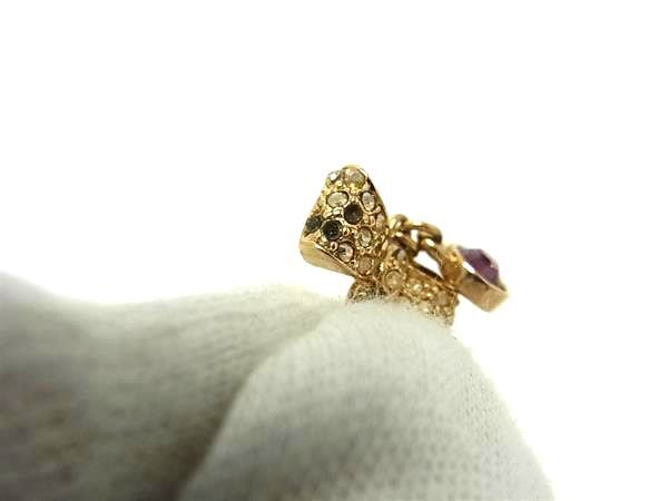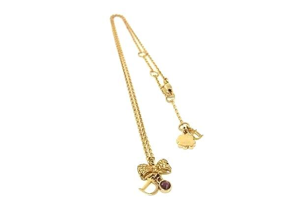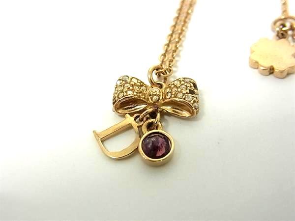 1円 ■美品■ ChristianDior クリスチャンディオール ラインストーン リボン ネックレス アクセサリー レディース ゴールド系 FR5233