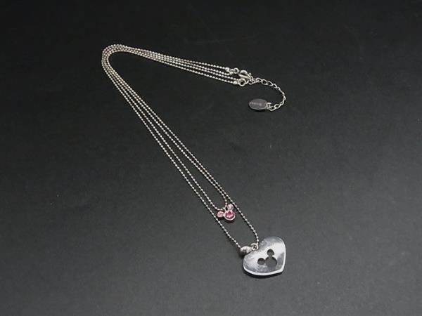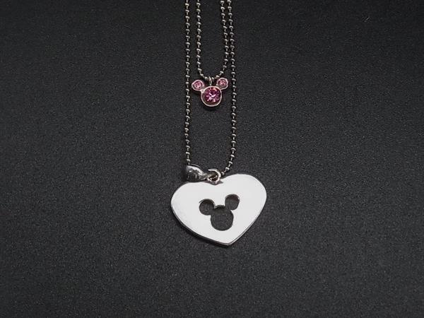 ディズニー ミッキー SV925 ラインストーン 2連 ネックレス ペンダント アクセサリー レディース シルバー系×ピンク系 DI6489
