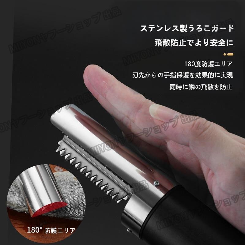 大人気新品うろこ取り 電動 魚の鱗とり 魚の鱗除去器 鱗発散防止 飛び散らない ステンレス銀鱗 ウロコ取り防水 高速除去お色選択可 lhw180