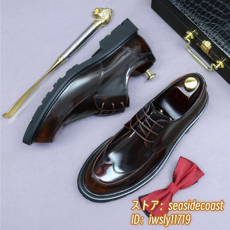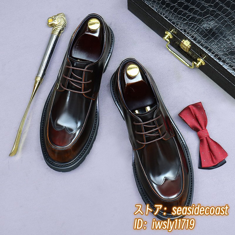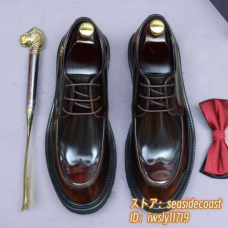 定価11万超★本革 超希少 レザーシューズ メンズシューズ イギリス風 職人手作り ビジネスシューズ 紳士靴 牛革 革靴 新品 ブラウン 25.0cm