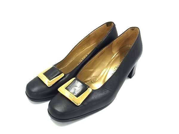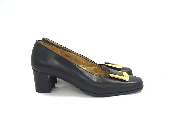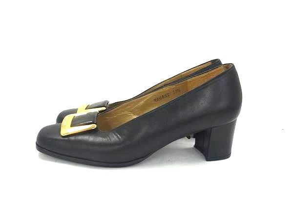 ■美品■ YVESSAINTLAURENT イヴサンローラン レザー ヒール パンプス 表記サイズ 35 1/2(約22.5cm) 靴 シューズ ブラック系 DI6021