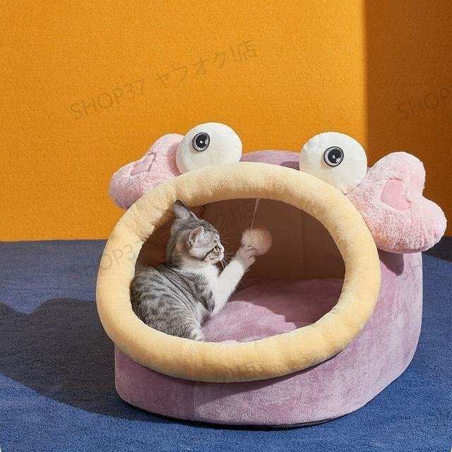 サイズ: S:31*27*27CM (体重約3kg以内のペット対応) M:39*38*31CM (体重約5kg以内のペット対応) L:47*41*36CM (体重約7.5kg以内のペット対応) 猫や小型犬に適した居心地のペットベッドです。ペットが楽に出入りできるようにデザインしております。 安心な素材を使用しております。柔らかい生地のフチは空間を暖かくし、ペットが頭を乗せられる快適なヘッドレストとしても機能します。柔らかい生地で空間を暖かくし、手足が伸ばしやすく,もっちりとした感触の柔らかベッドがネコと犬の体をやさしく包まれ、ふんわり支えます。 底面には滑り止めのドリップモールドを施し、湿気を防げ、摩擦抵抗を増加させ、ベッドが滑りにくくなっています。
