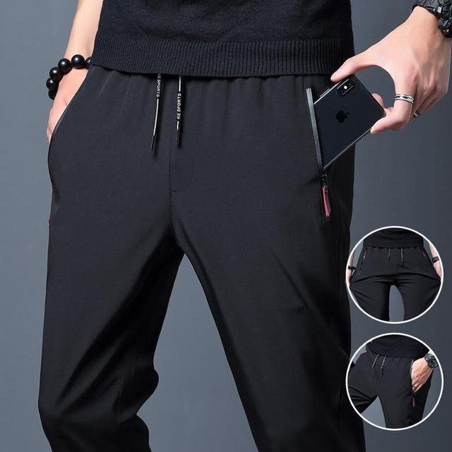 春 夏 秋 ゴルフパンツ カジュアル テーパード チノパン メンズ パンツ アイスシルクパンツ ロング丈 ブラック XL