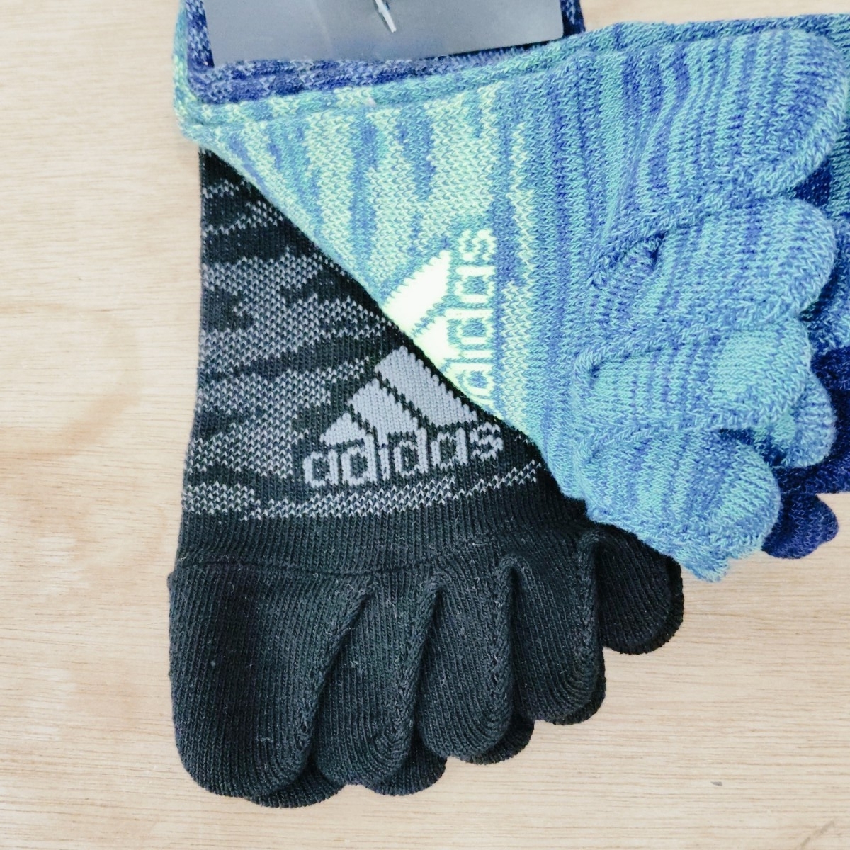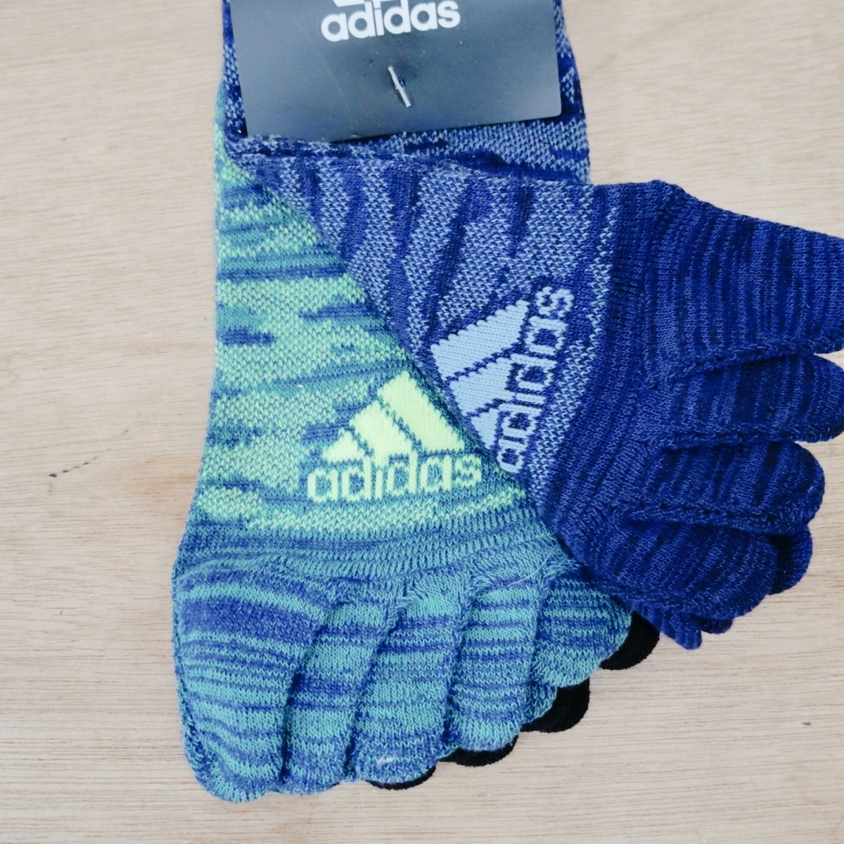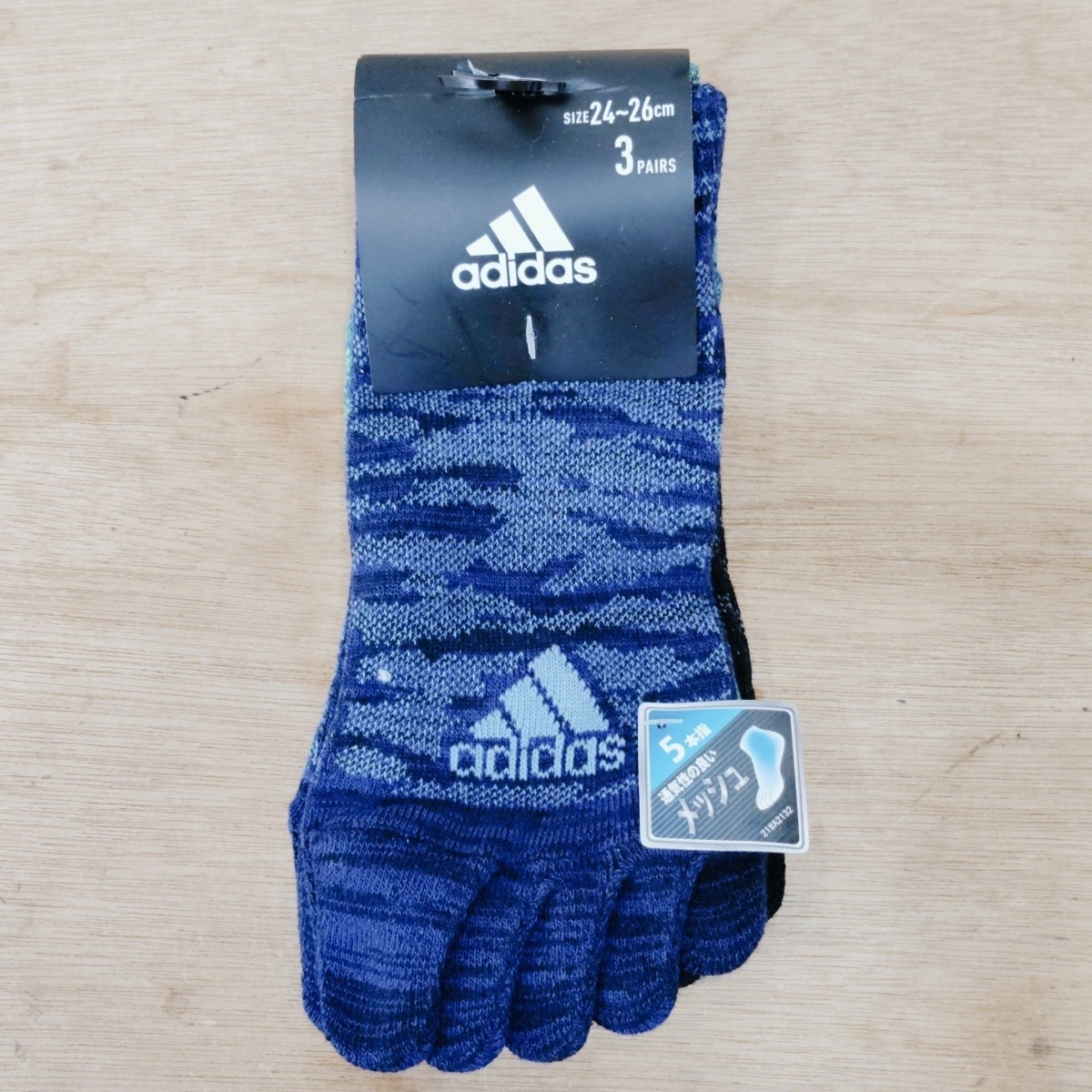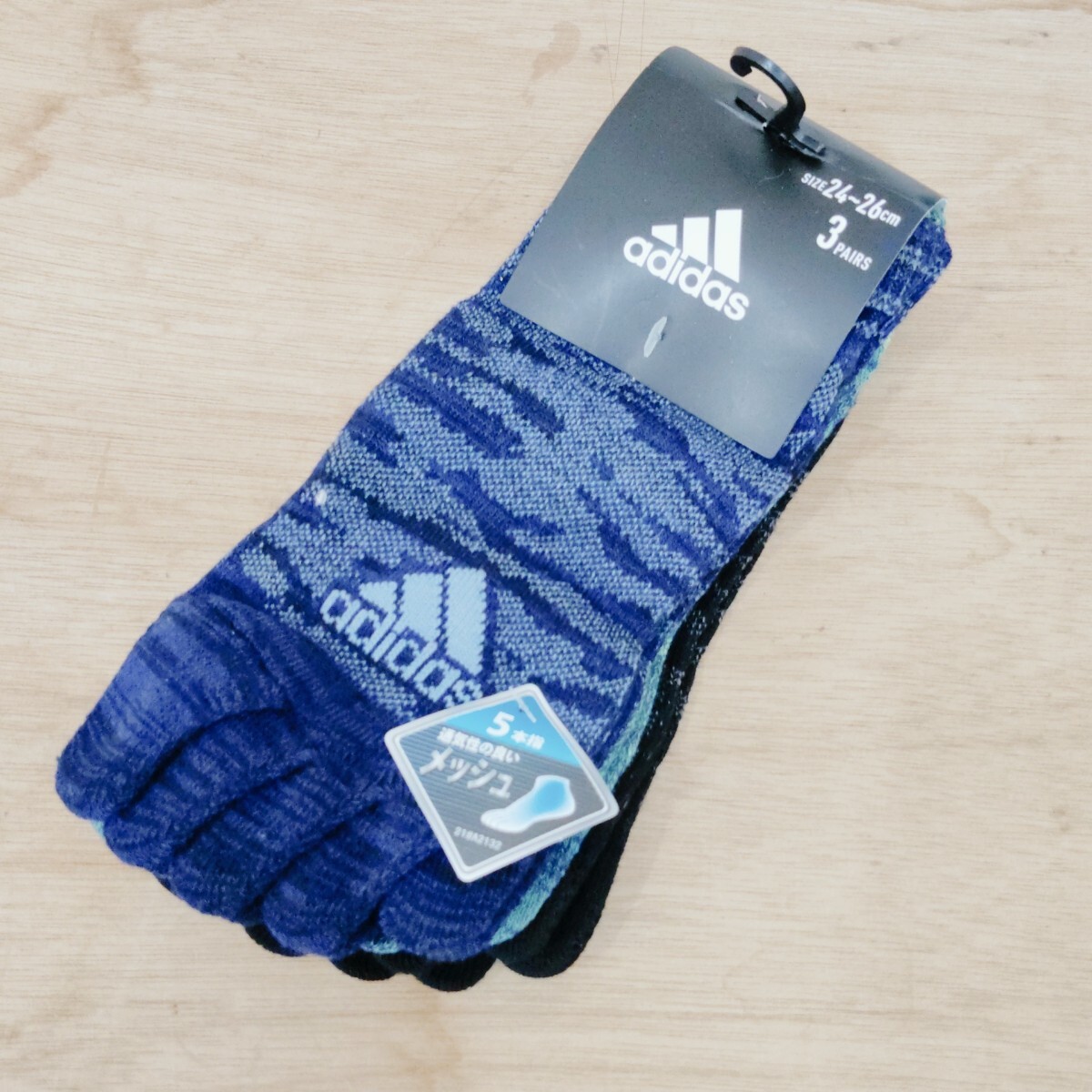 れ/adidas 5本指靴下 3色セット 24〜26cm メッシュ 青 黄緑 黒 メンズ