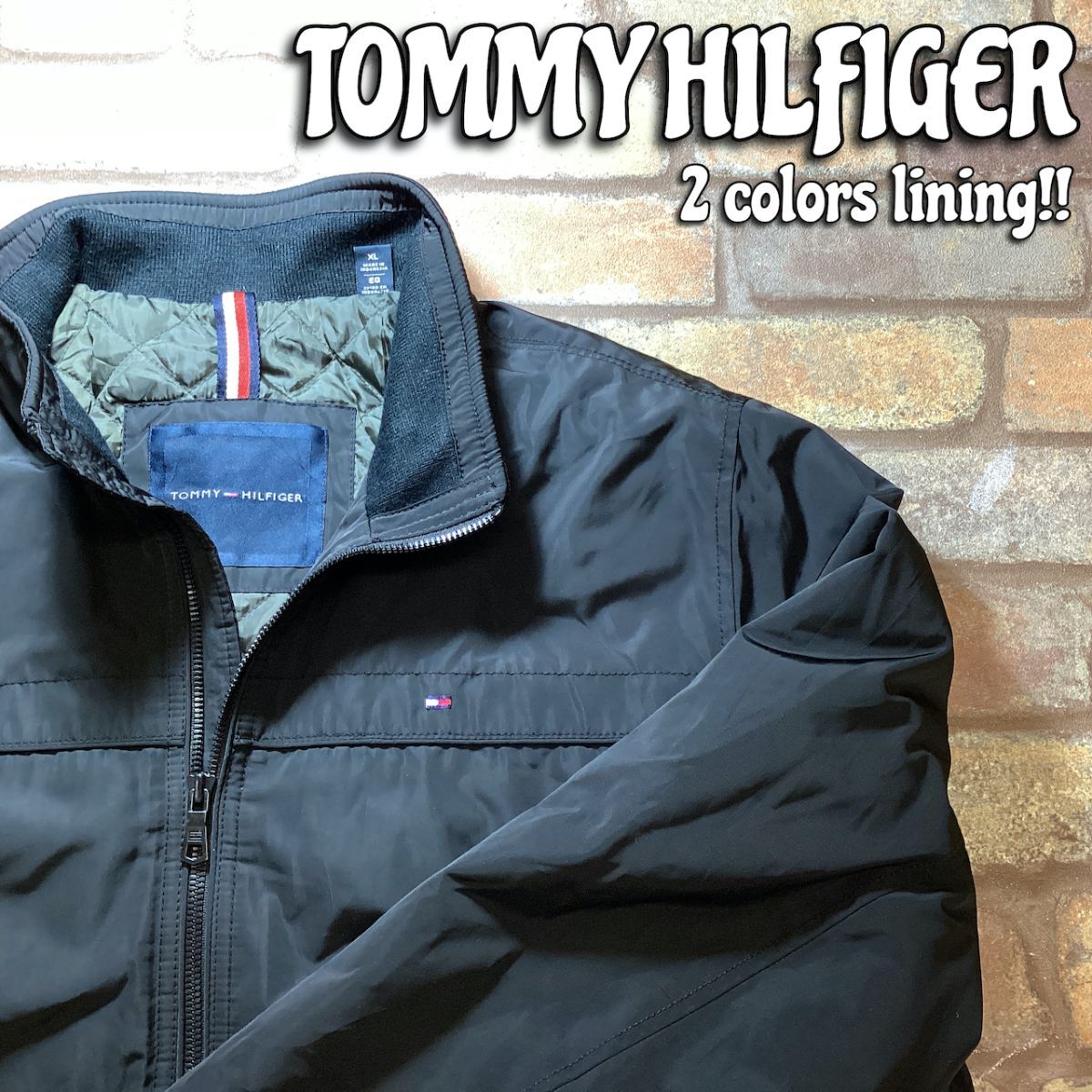 ★海外BIGサイズ!!★正規品★【TOMMY HILFIGER トミーヒルフィガー】2色キルティング 中綿入 ウインドジャケット【メンズ XL】黒 K3-359