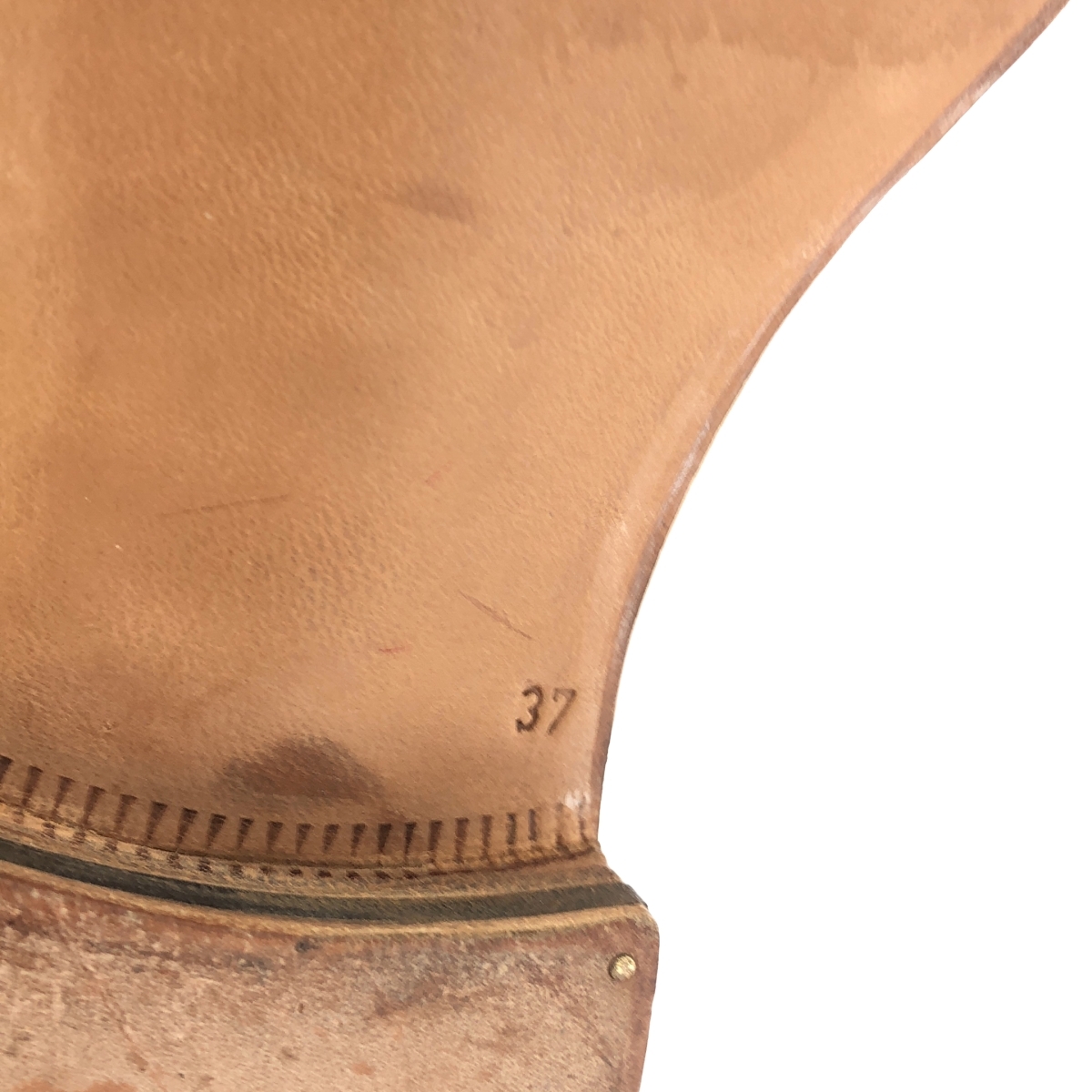 全体的に数箇所にスレ、履きジワ、レザー表面にやや薄シミがございます。