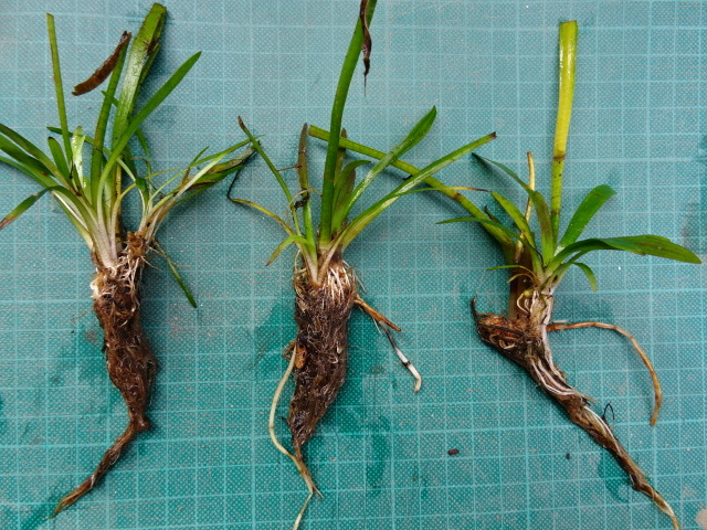 3枚目の写真 秋の状態・花茎は終わり、来期用新芽が数本ずつ出始めています 分株するときは春まで待ってください