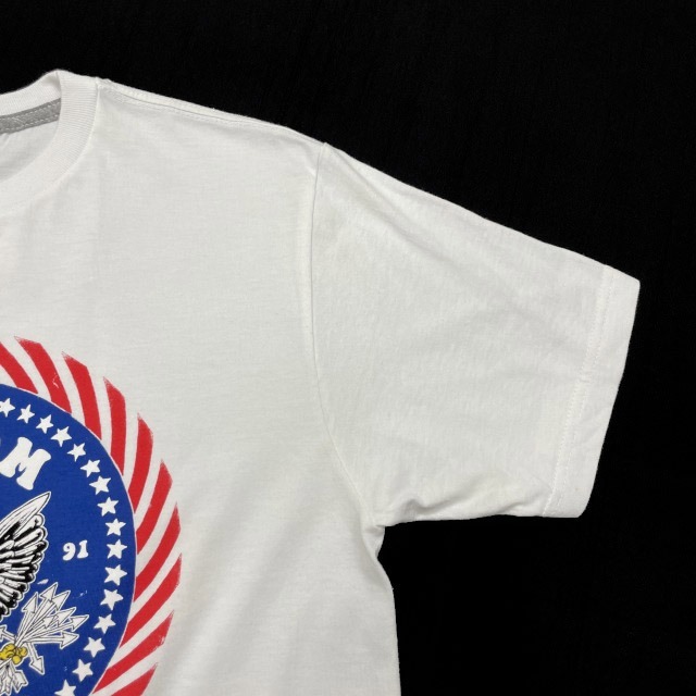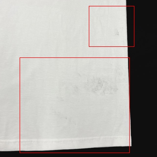 新品※正面のプリント右下付近と左袖周辺、また背面の右裾周辺にそれぞれ汚れがございます。画像7、8、9枚目をご確認くださいませ。記載の汚れが理由による返品交換は出来かねますので、予めご了承くださいませ。