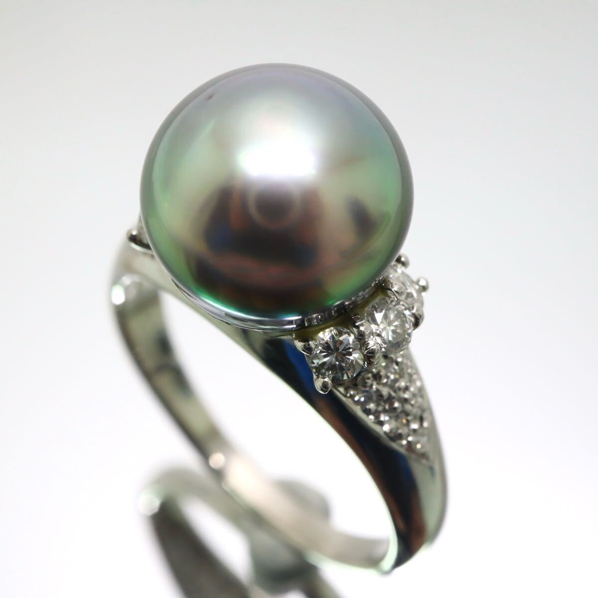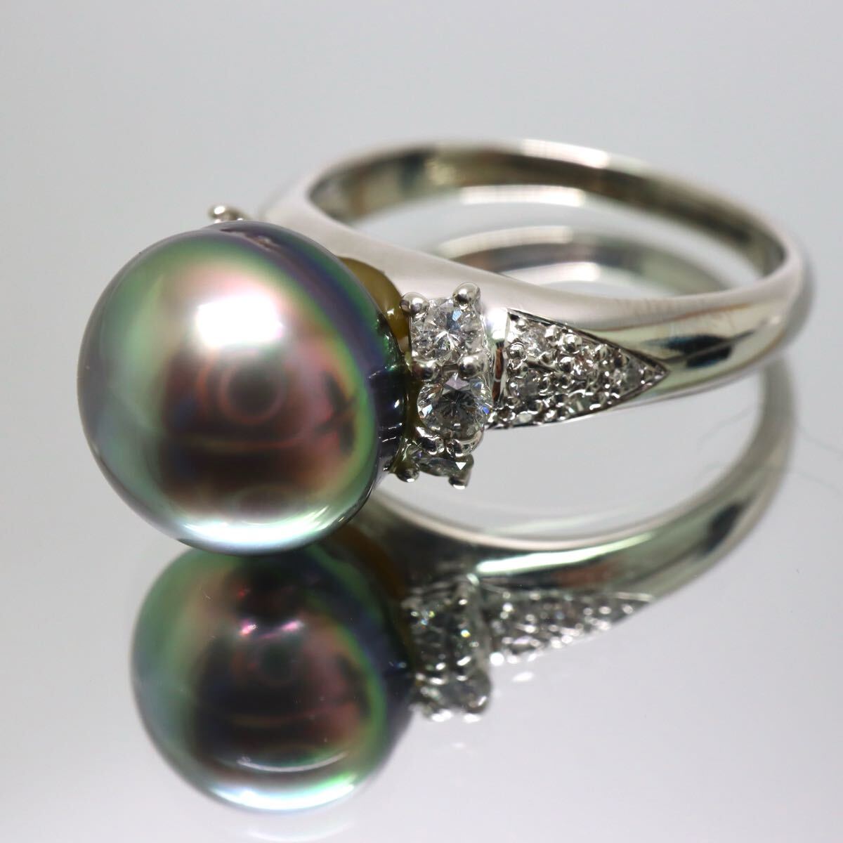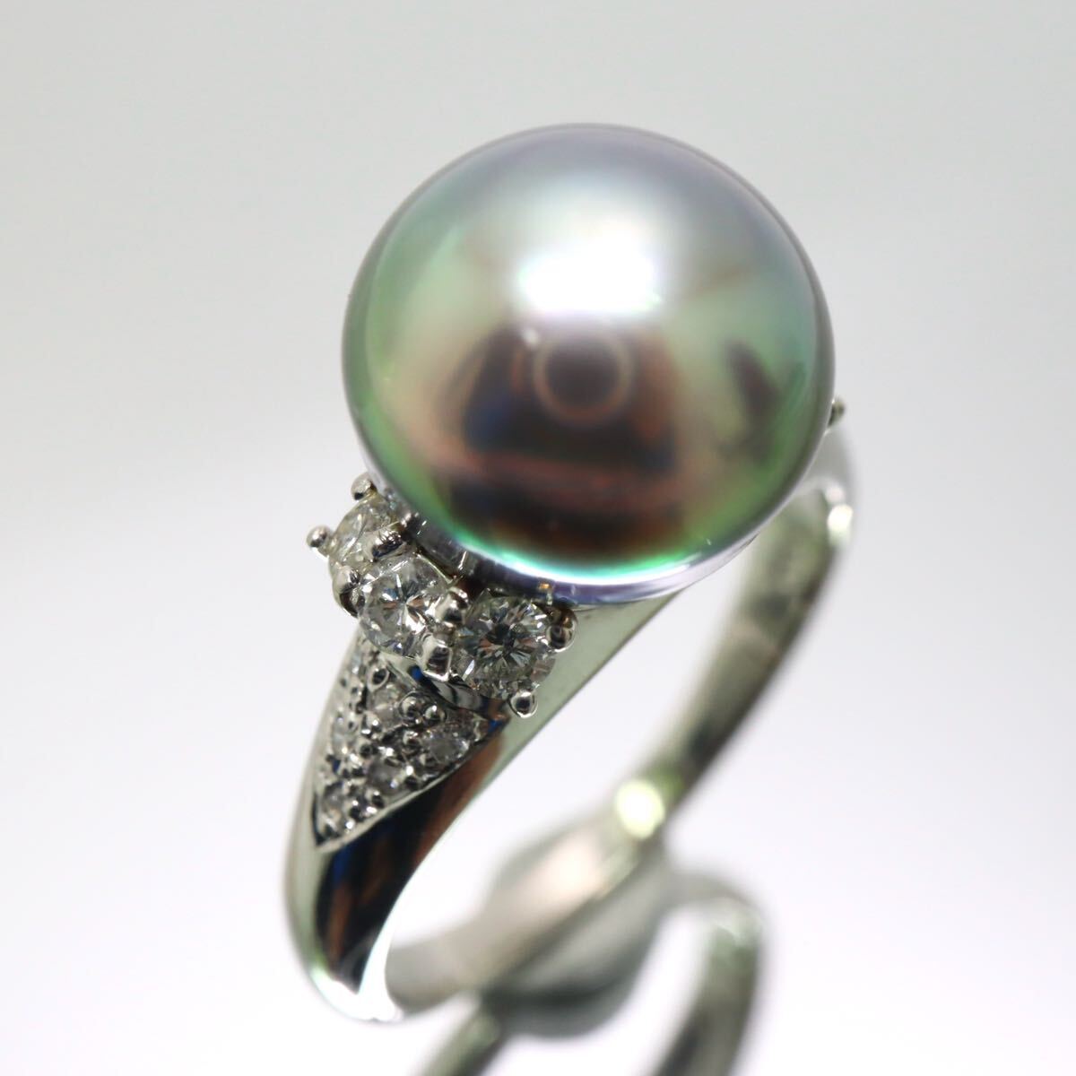 〈南洋黒蝶真珠/天然ダイヤモンドリング〉