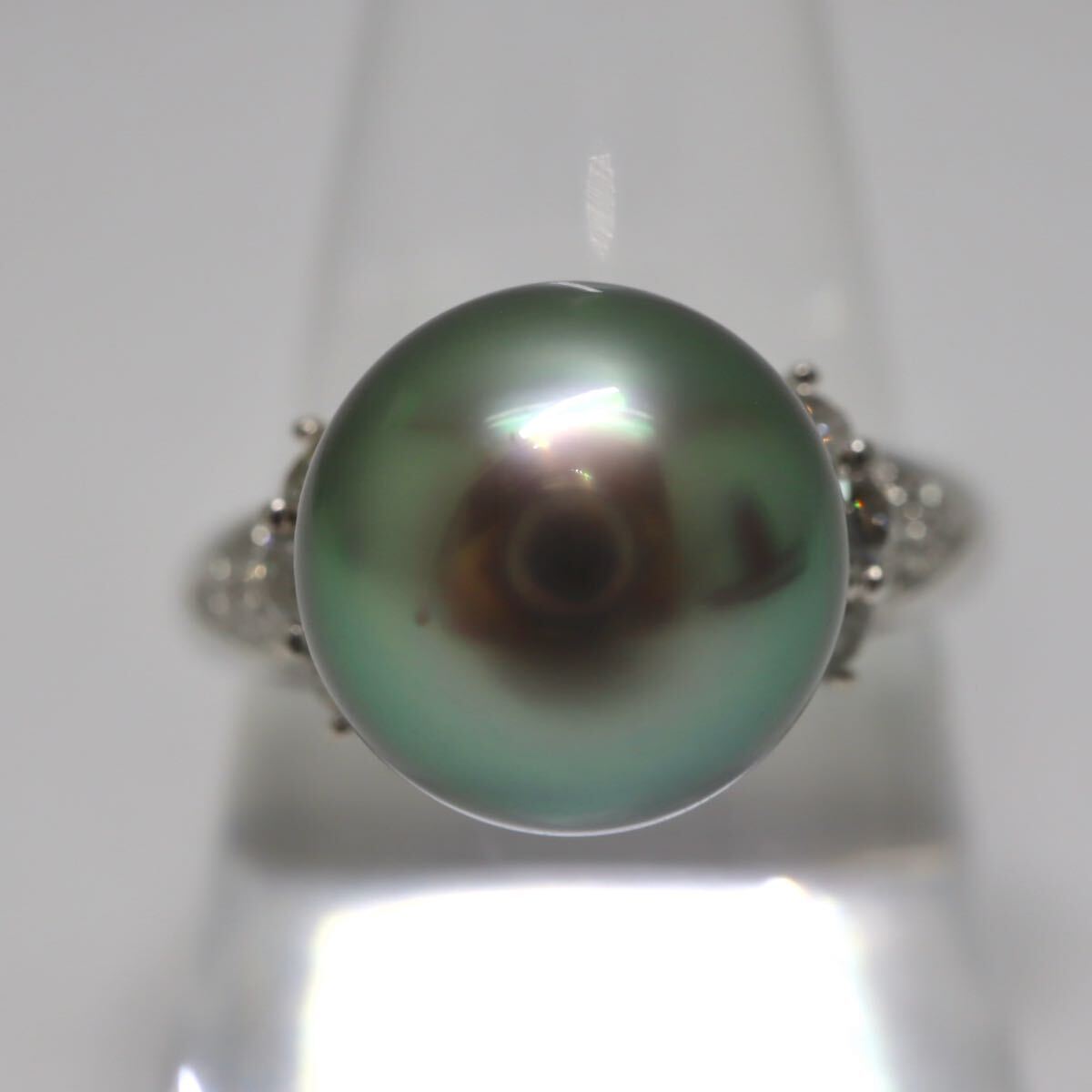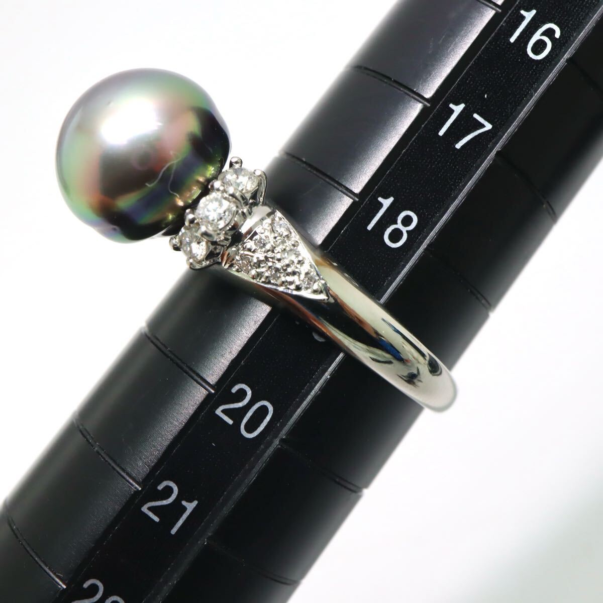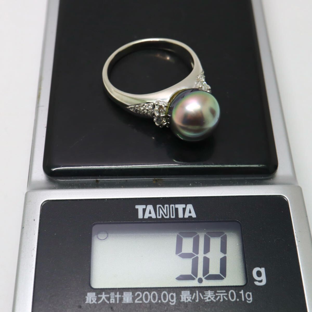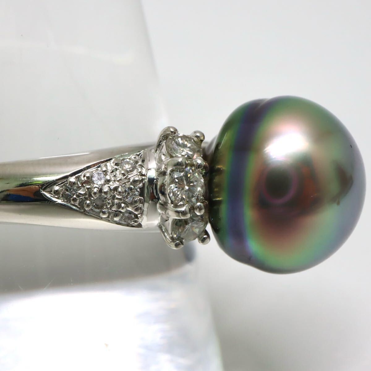 〈南洋黒蝶真珠/天然ダイヤモンドリング〉